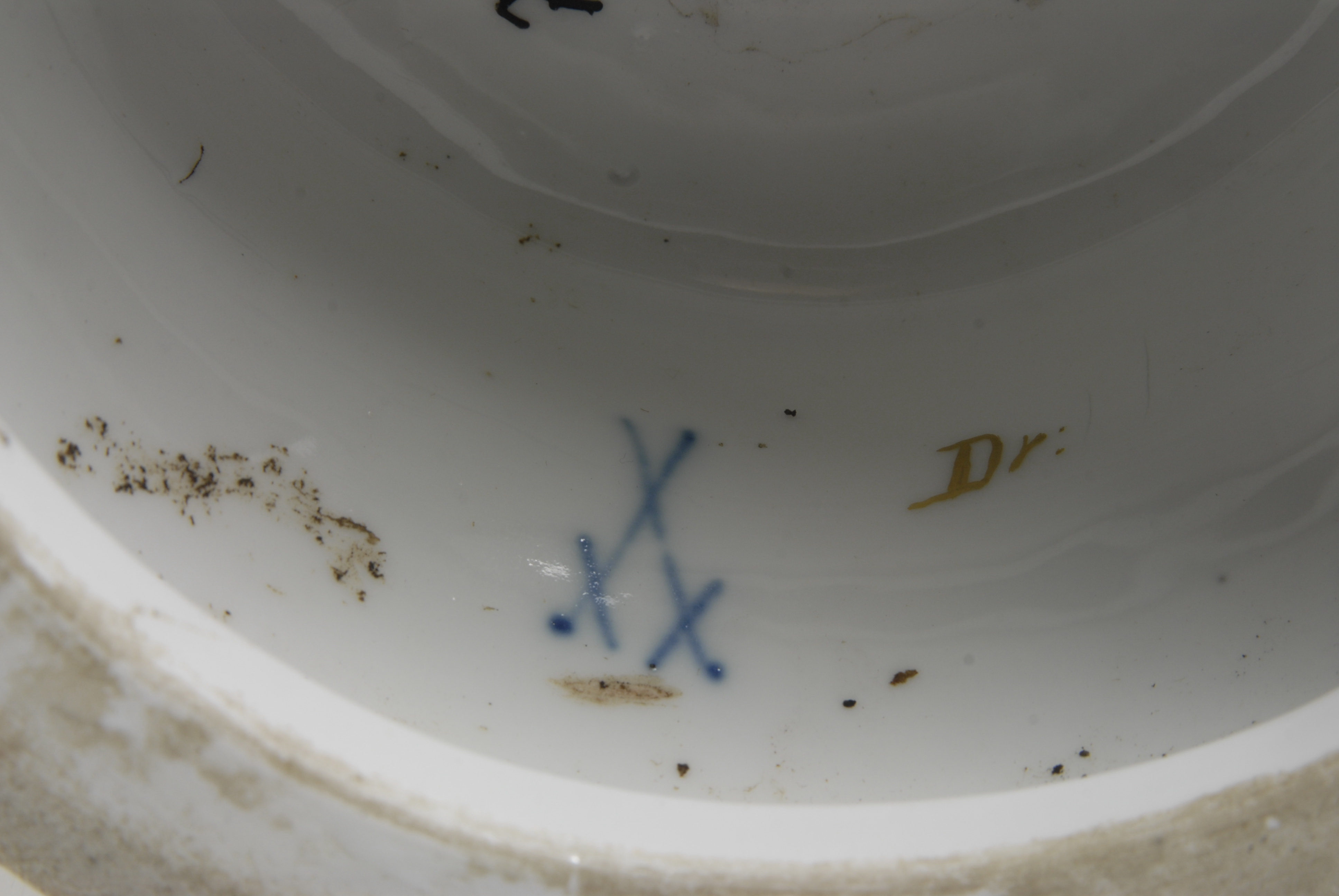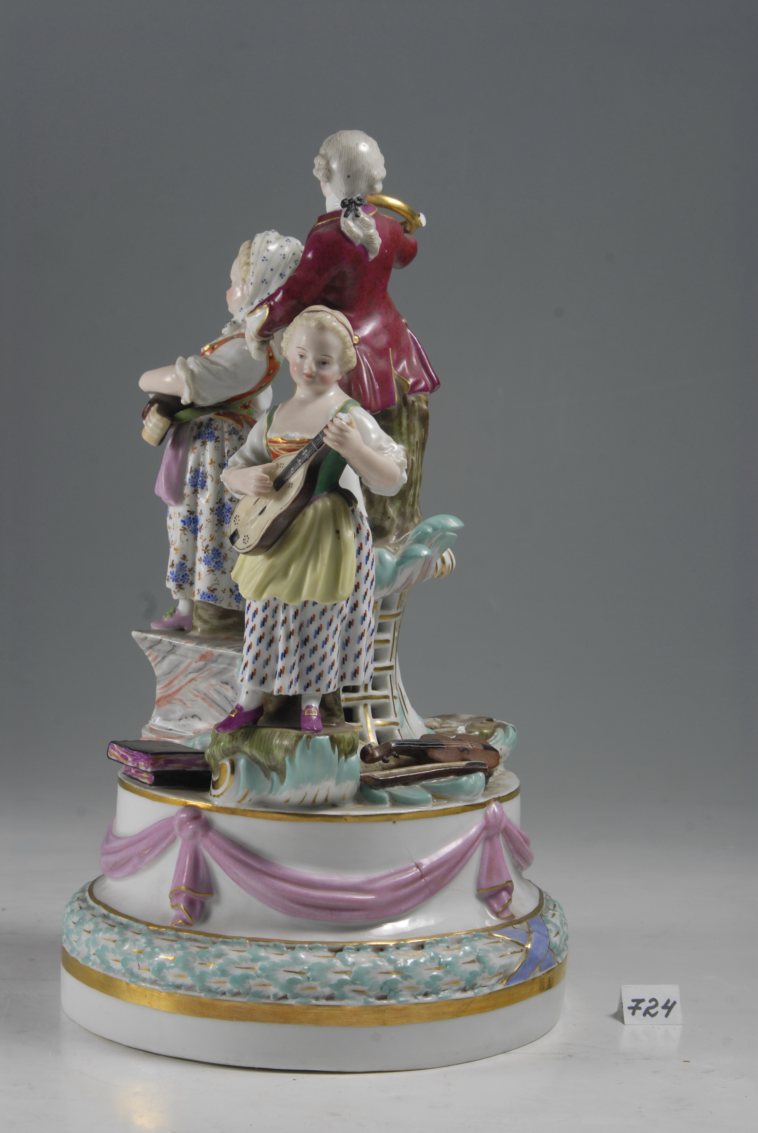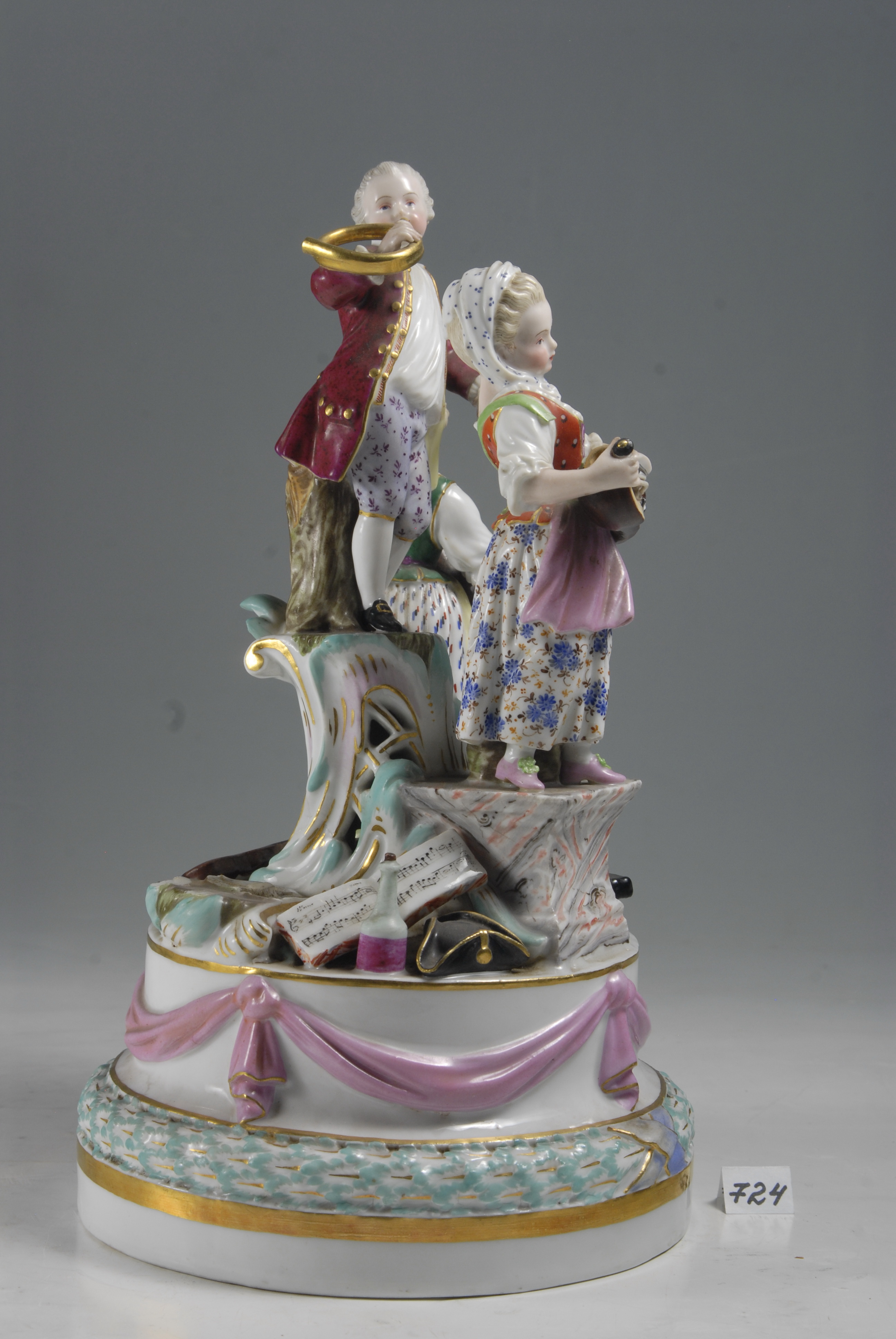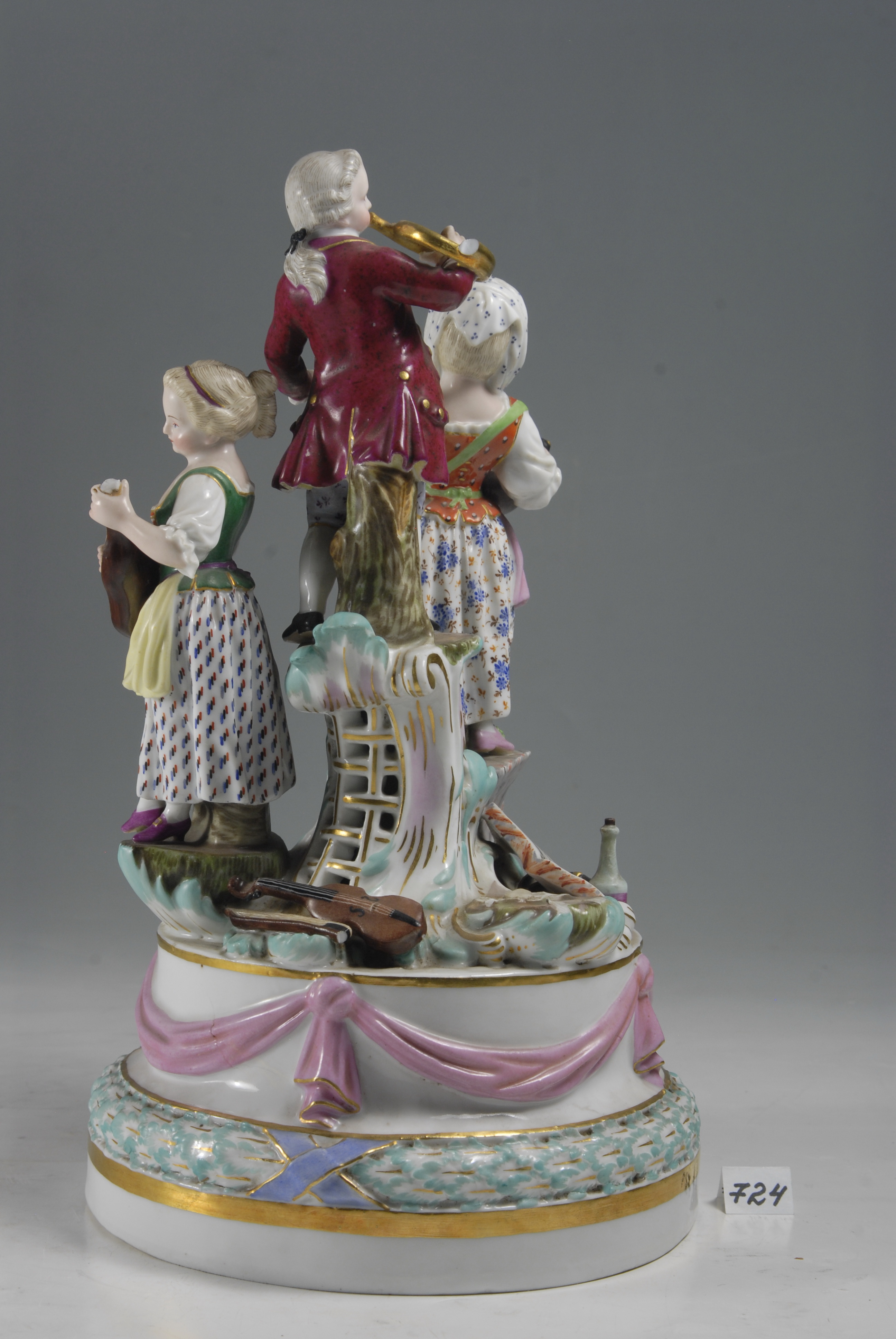 Авторські підписи, клейма: марка синя підглазурна: схрещені мечі ... Золотом літери "Dr", в тісті цифри "58", "74", "В 60"/Історія Атрибуціi: консультація Р.С. Соловейчик (Ермітаж, 1961 р.) - Мейсен, сер 19 ст. за моделлю Марколіні ("Музыцирующие дети")/Кількість: 1/Старі документи прийому: акт БВ № 1