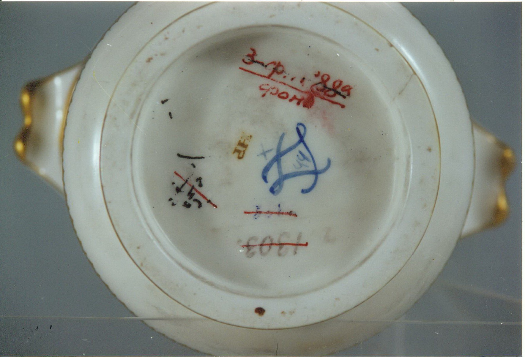 Історія Атрибуціi: консультація Р.С. Соловейчик (Ермітаж, 1961 р.) - підробка під Севр (пляшкова передача)/Кількість: 1/Старі документи прийому: акт БВ № 1