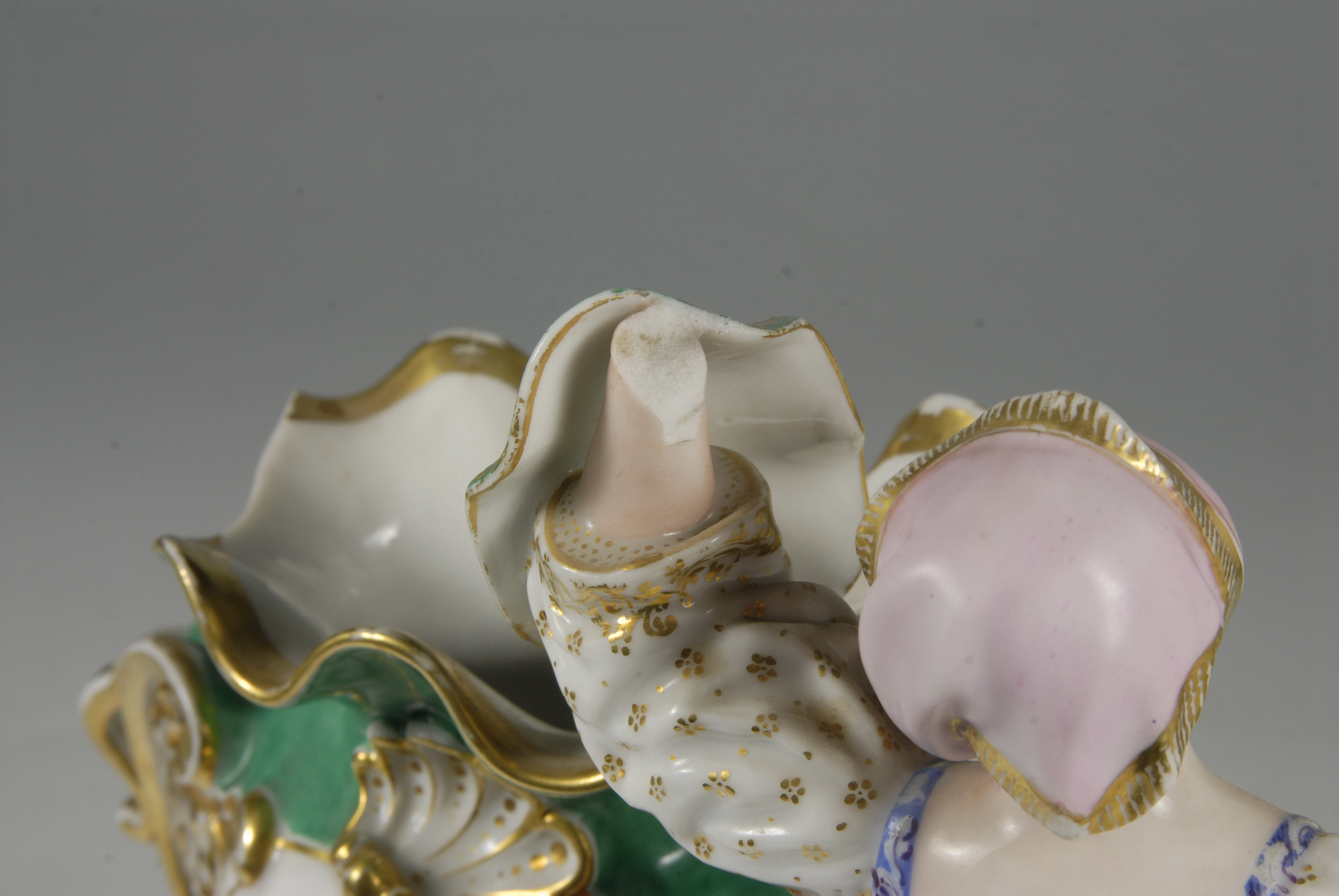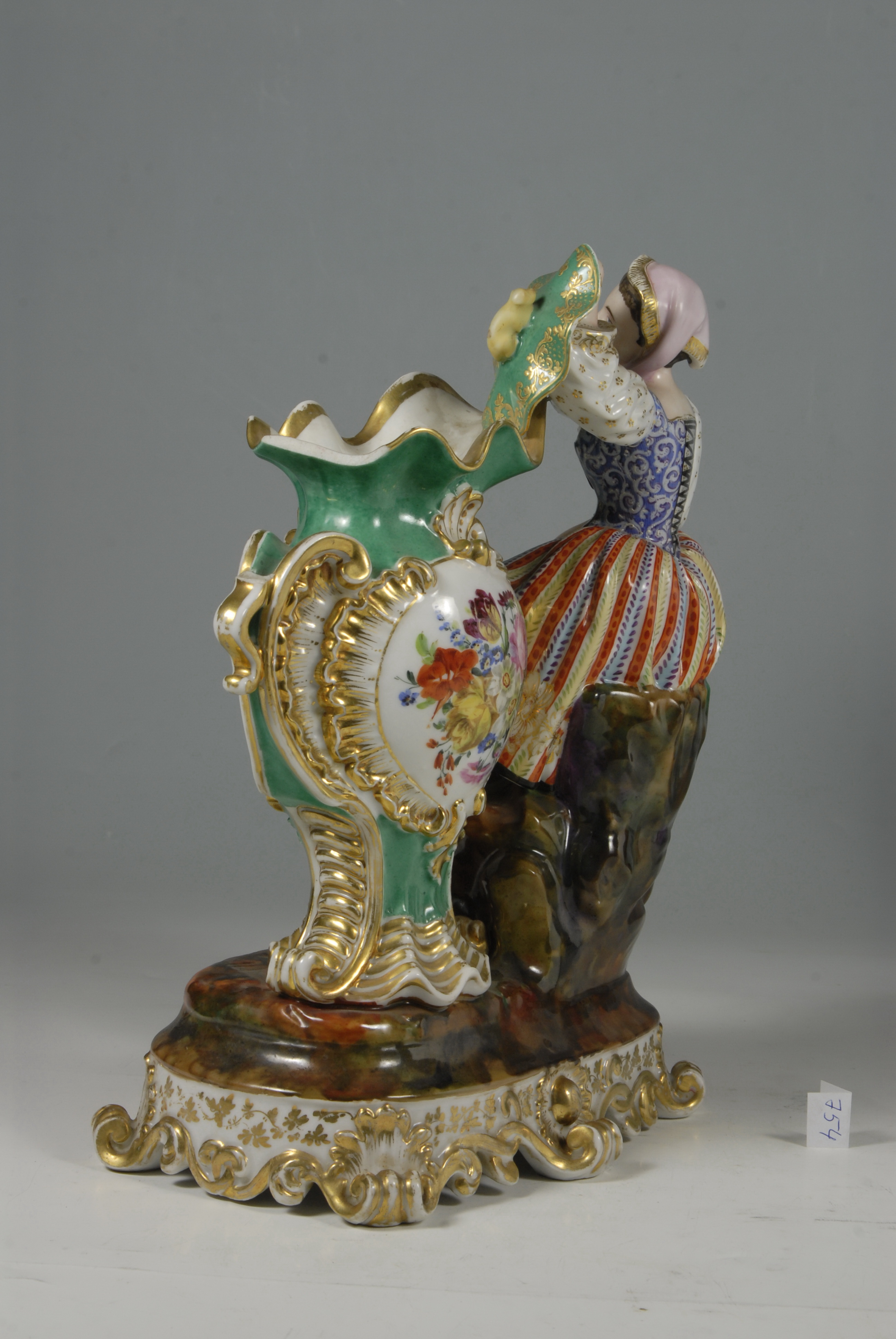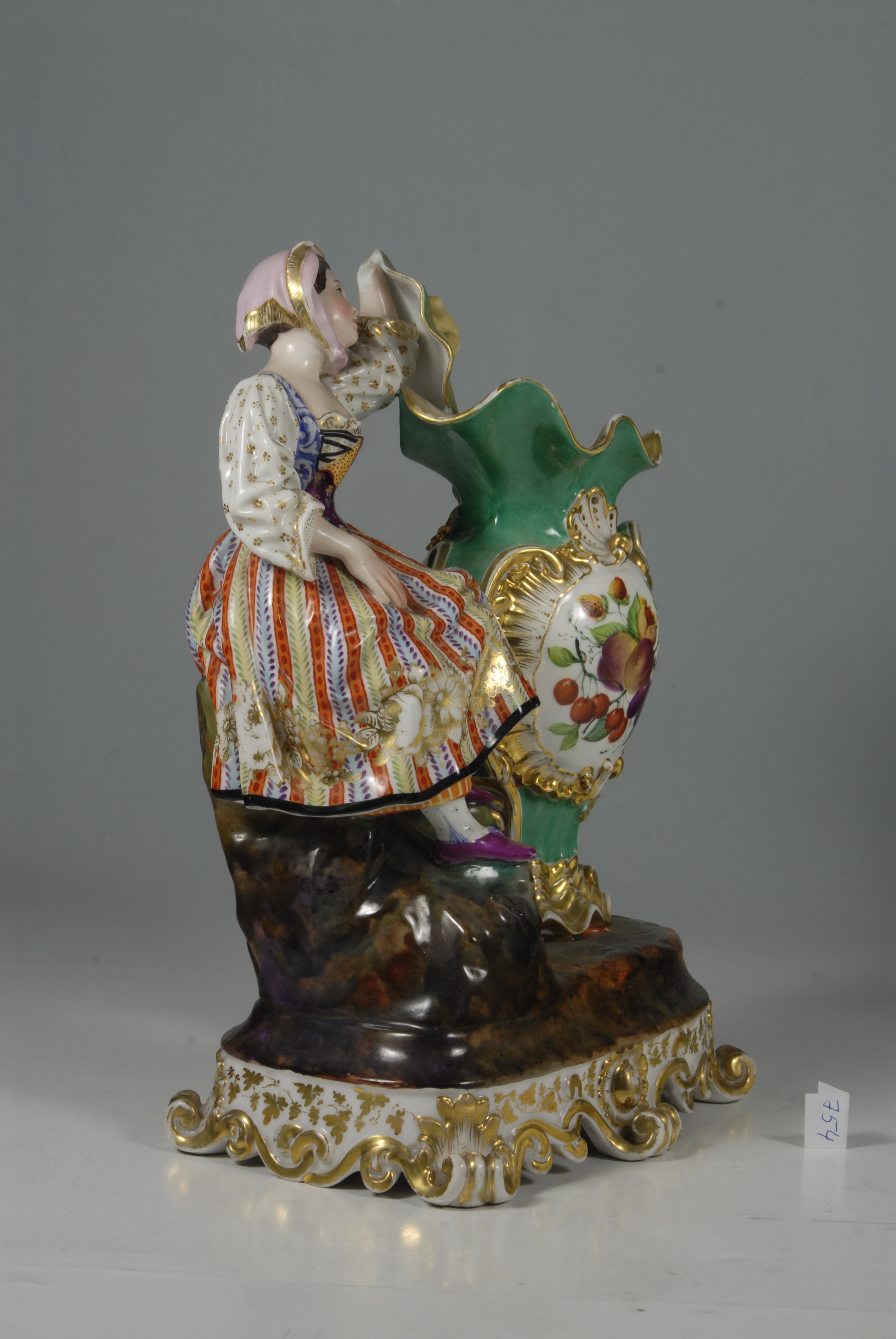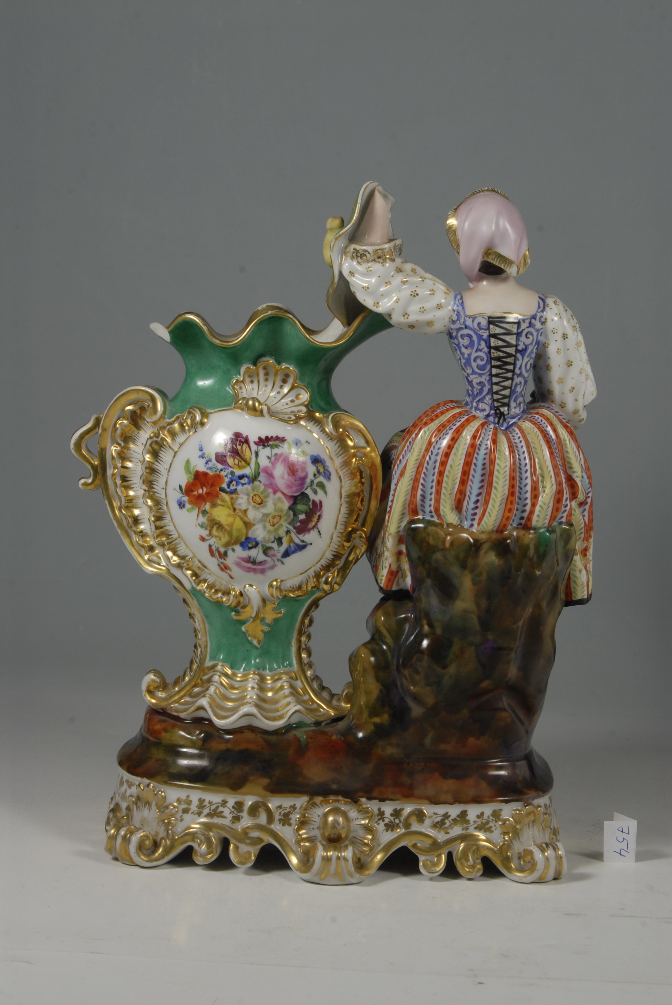 утрачено ручку та частину борта вази, кисть лівої руки жінки; позолота стерта,