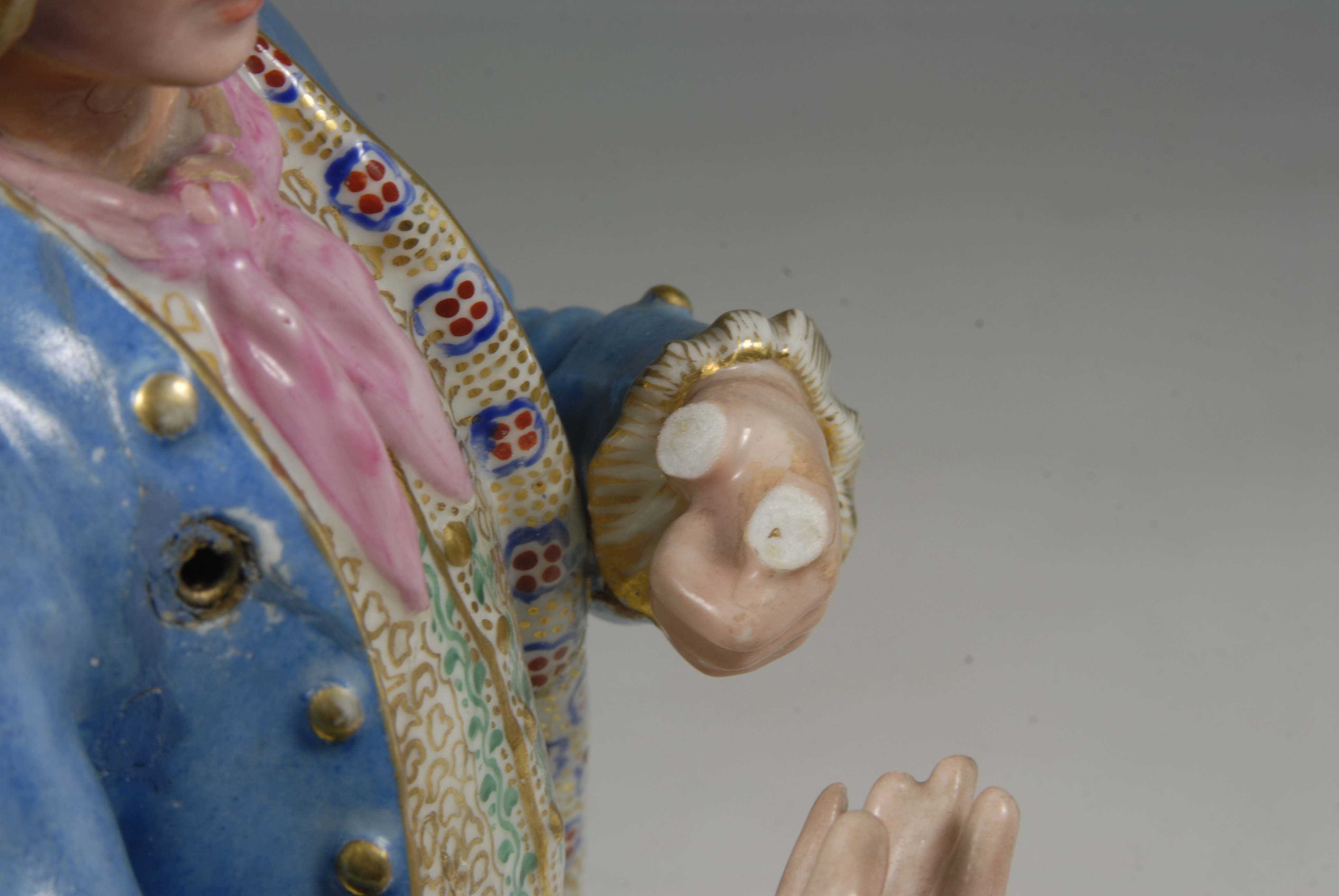 склеєна з кількох частин. Утрачено великий та вказівний пальці на лівій руці,
