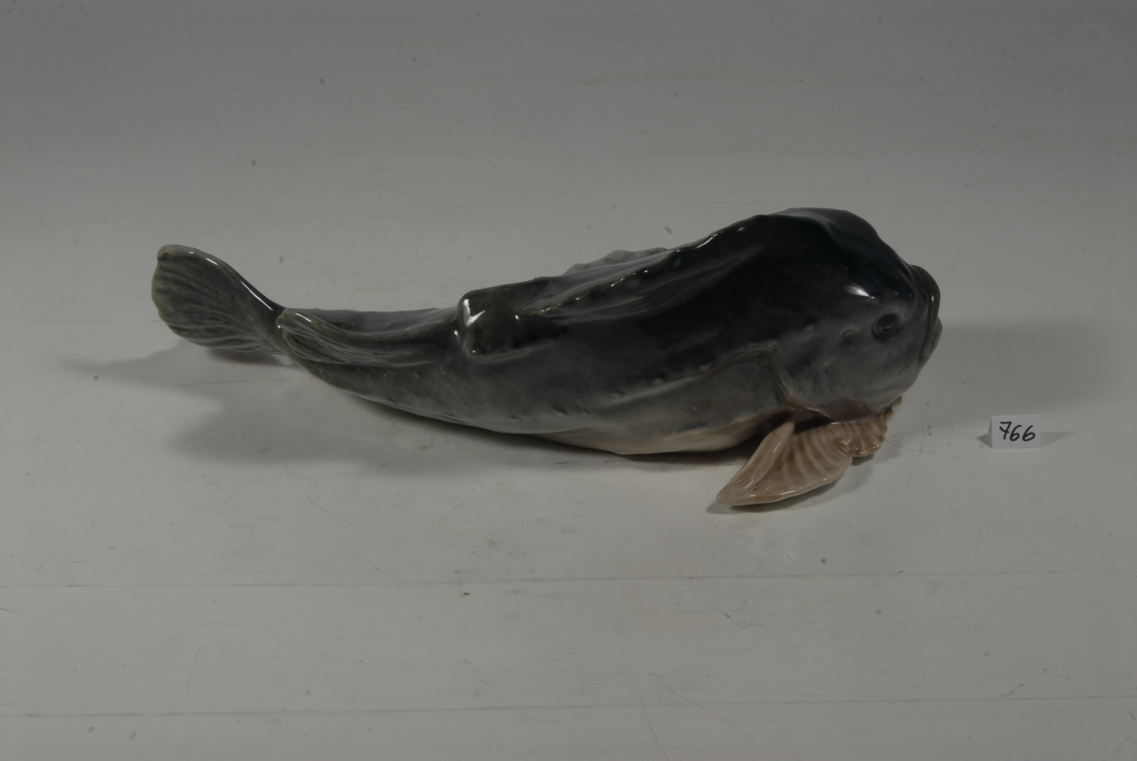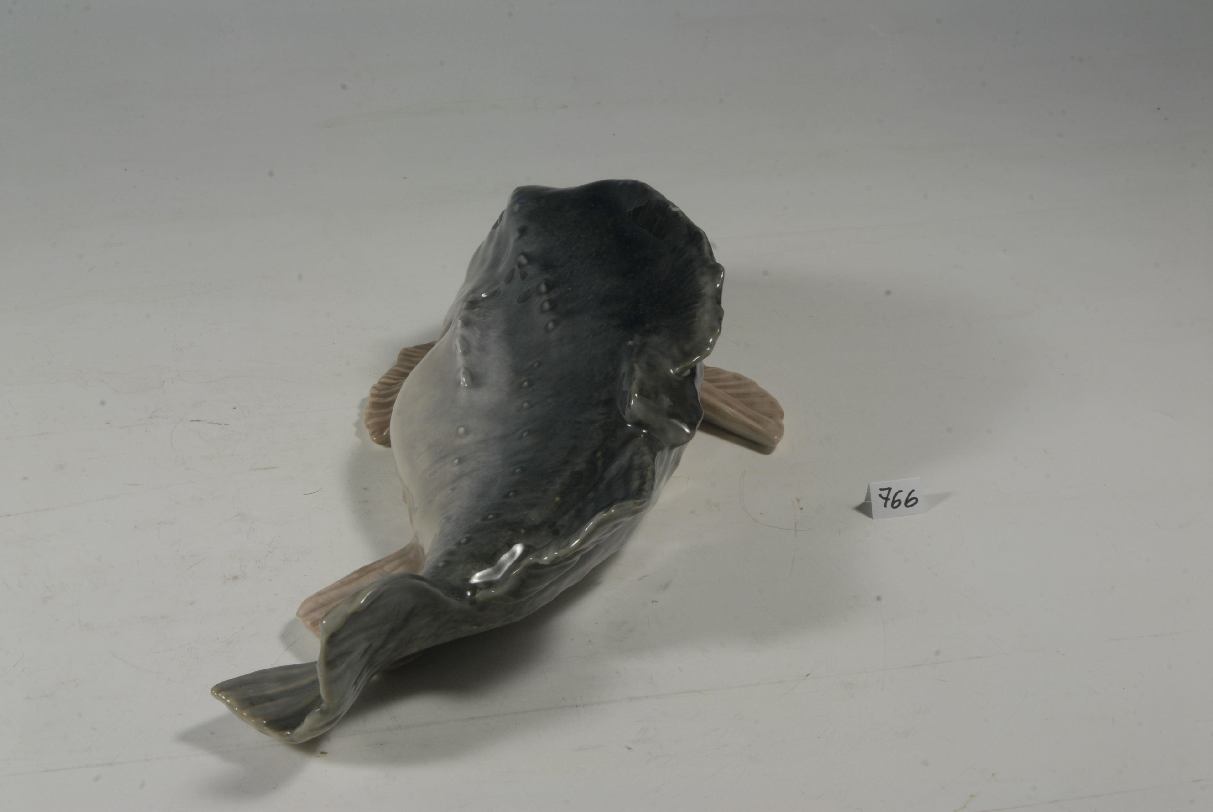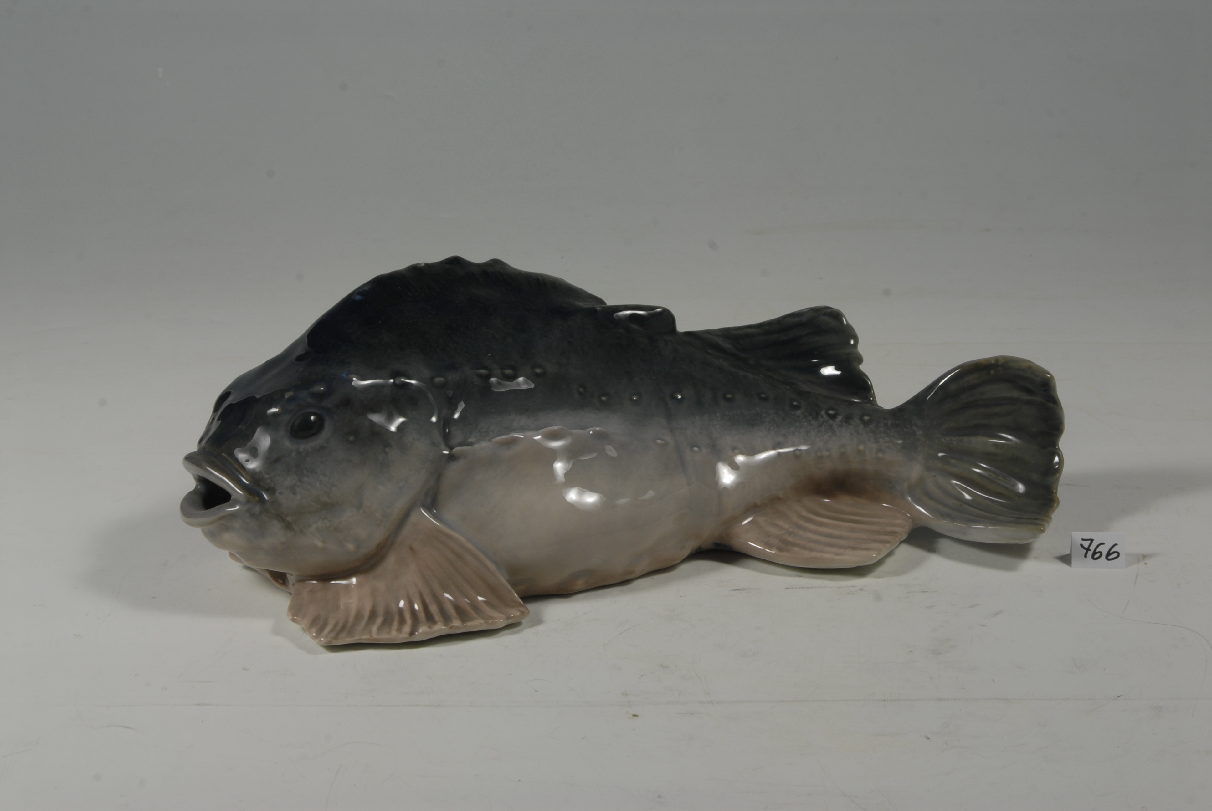 Закладка “Атрибуція” - Змiн.опис: Риба з поверненою вліво головою та хвостом, сіра, знизу рожева./Змiн. час створення: кінець XIX - початок XX ст.місце створення, школа: Королівська порцелянова мануфактура