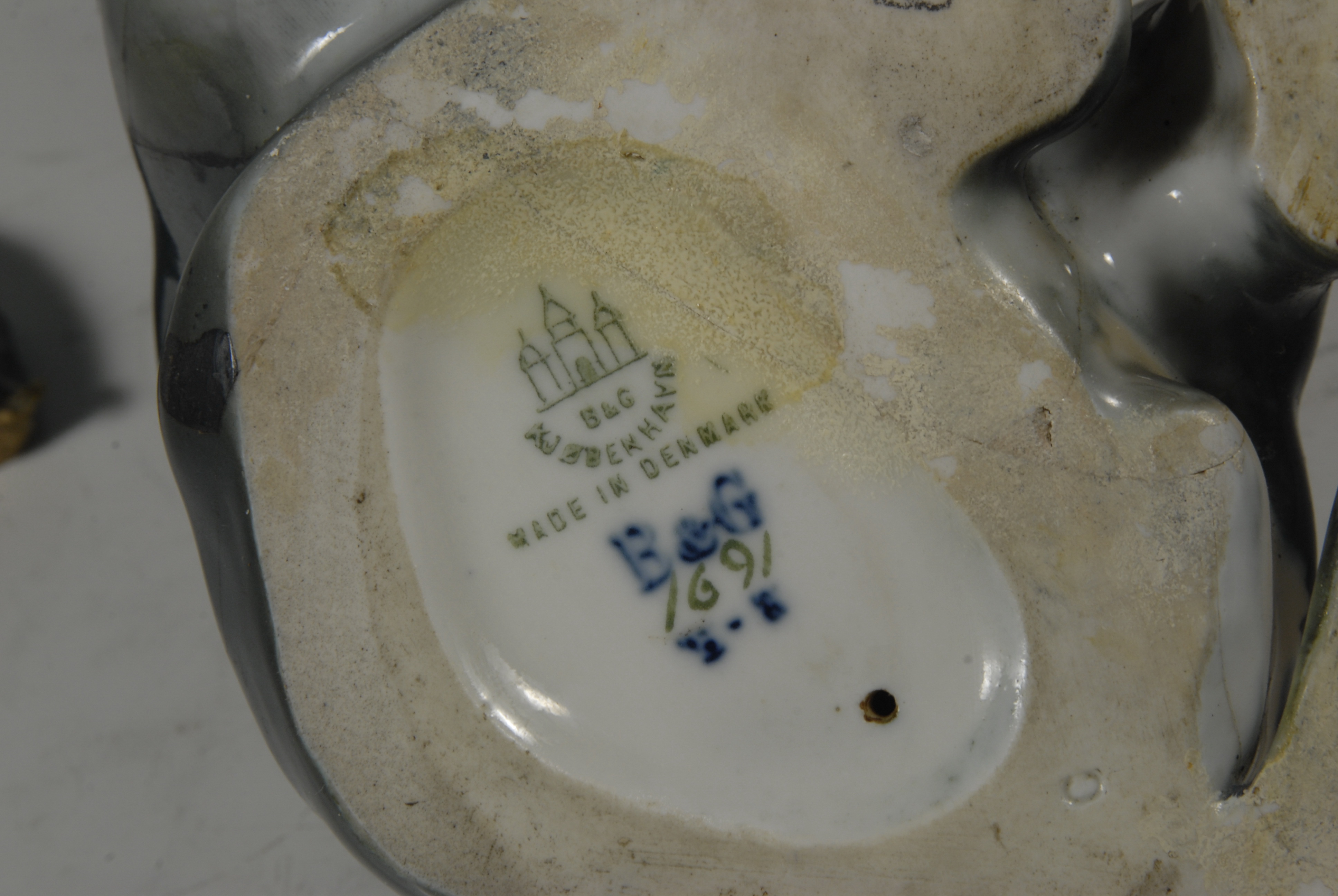 Авторські підписи, клейма: марка зеленою фрбою з синіми підглазурними літерами: BG. Зеленою фарбою: 1691. В тісті вдавлена літера: С./Кількість: 1