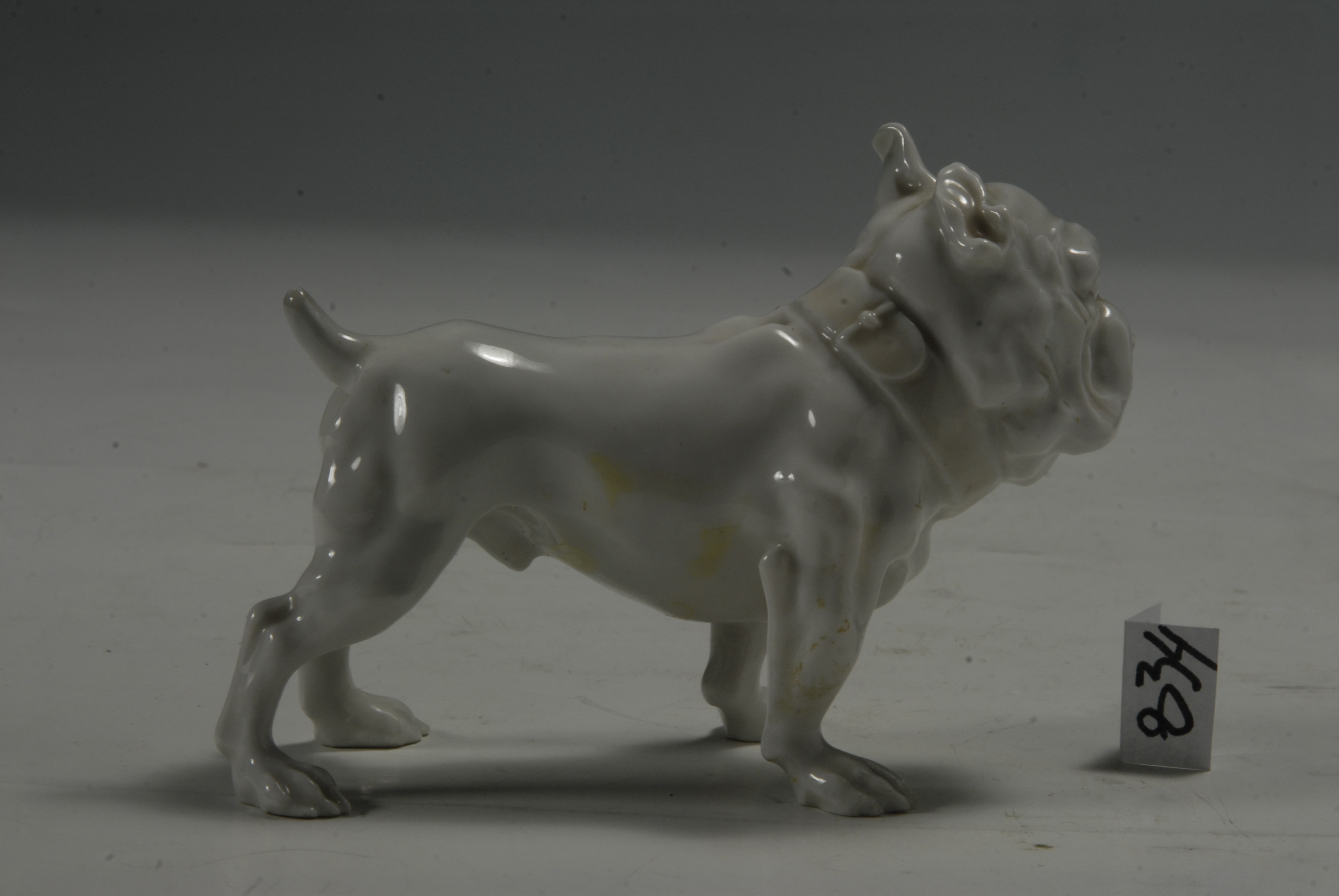 Закладка “Атрибуція” - Змiн.опис: Бульдог, який стоїть; праве вухо обрубане, голова трохи повернена вліво, на шиї нашийник; колір білий з блідо-коричневими плямами на морді та кінчику хвоста.