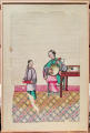 Лубок пошкоджено. Великий прорив на килимі та сукні служниці та кілька дрібних. Обірвано та порвано лівий край та всі кути.,