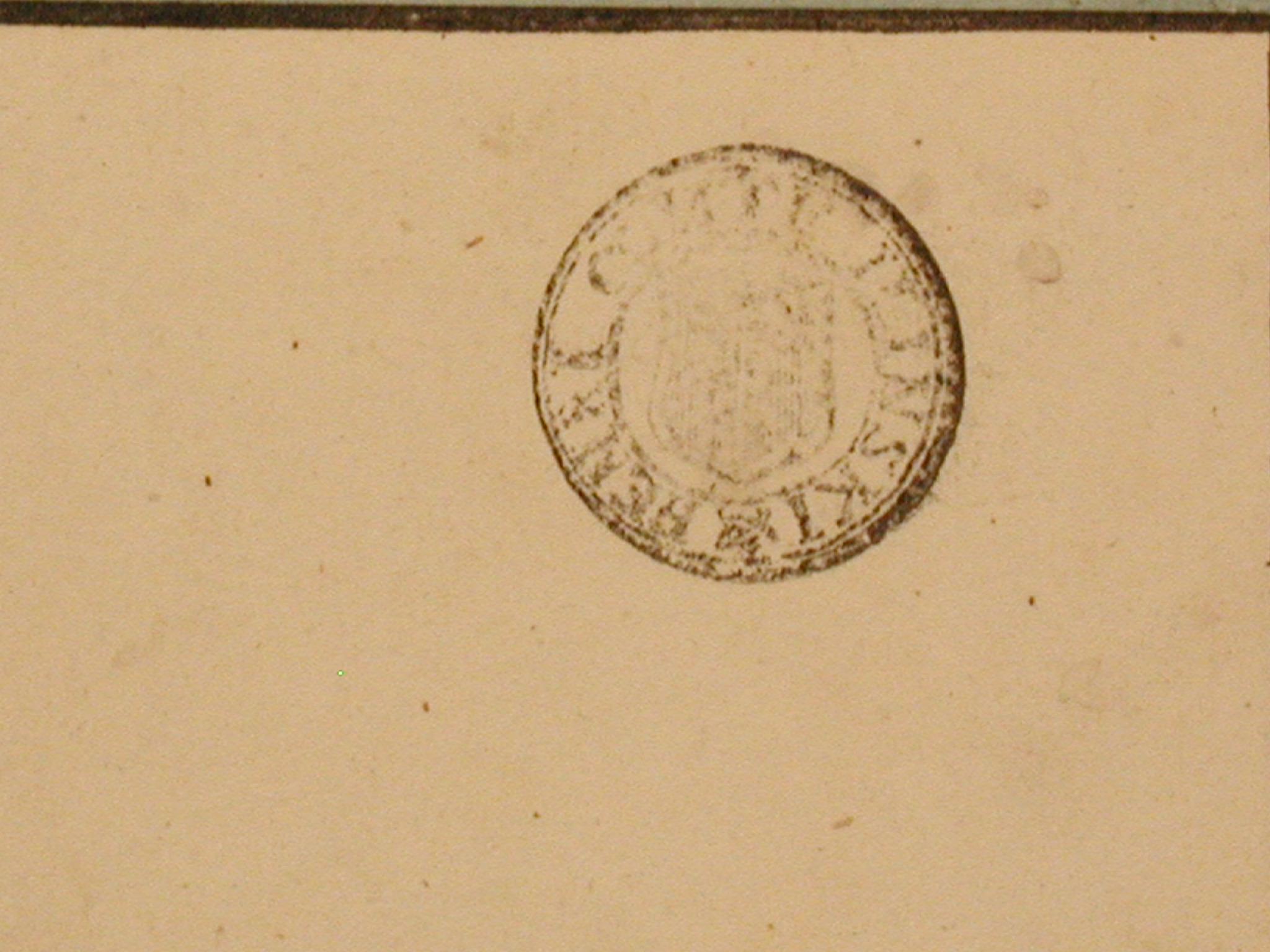 Информацiя об оригiнале: Під зображенням в рамці: "Maison du Roi". Нижче назва французькою мовою в два рядки: "M.M.les Chevau-Légers du Roi, en grand et en petit uniforme". Біля нижнього краю ліворуч: "A Paris chez Martinet, rue du Coq no.15". Праворуч: "Déposé à la Direction des Estampes"./Кількість: 1/Старі документи прийому: Акт №1 від 05.01.1952/Опис: В центрі аркуша - профільне зображення кавалериста на коні, який гарцює. Праворуч - двоє піших офіцерів, зображених під руку./ншi написи, штампи, печатки, етикетки, наклейки: Печатка: угорі праворуч круглий відбиток чорним.