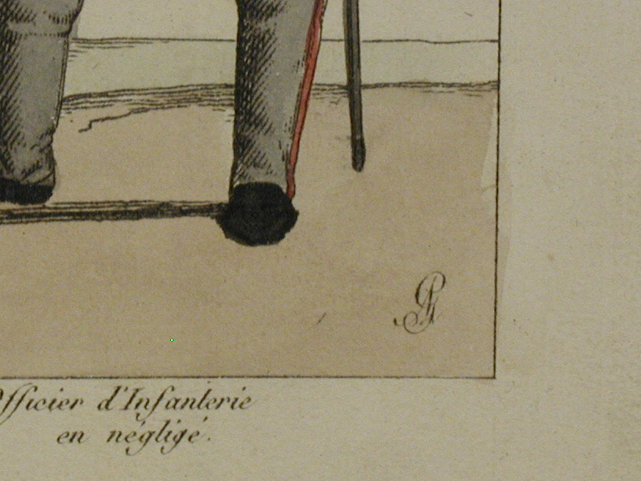 Закладка “Атрибуція” - Наим. предмета, издания: гравюра/Змiн.Розміри дошки: 230х323/Змiн.розміри листа: 266х381/Змiн.додаток до назва (лист, ...): Аркуш № 1 з серії «Армія союзних монархів, 1815 рік» («Armée des Souverains Alliés, année 1815»)./Змiн. авторські пiдписи i написи: Угорі над зображенням «Armée des Souverains Alliés, année 1815. №1» («Армія союзних монархів, 1815 рік. №1»); під зображенням зліва направо: «Chef d’Escadron des Cosaques réglés de la Garde Impériale»(«Командир ескадрону регулярних козаків Імператорської гвардії»), «Général de Brigade d’Infanterie»( «Бригадний генерал піхоти»), «Chef d’Escadon. des Dragons du Grand Duc Constantin» («Командир ескадрону гусар Великого Князя Константина»), «Officier d’Infanterie grande tenue» («Офіцер піхоти у парадній формі»), «Officier d’Infanterie en négligé» («Офіцер піхоти в повсякденній формі»); нижче – назва «Officiers de l'Armée Russe» («Офіцери російської армії»); на зображенні у правому нижньому куті – монограма автора «AG»; у лівому нижньому куті ім’я та адреса видавця: «à Paris chez Martinet libraire rue du Coq no.15»; у правому нижньому куті – позначка про реєстрацію: «Déposé à la Direction Générale de la Librairie»./Змiн.опис: Група з п’яти офіцерів; ліворуч – командир ескадрону козаків у шароварах та із шаблею./Змiн. Iншi написи, штампи, печатки, етикетки, наклейки: У правому верхньому куті кругла чорна печатка «HENRІ COMTE ILINSKI»./Змiн. час створення: 1815.Автор, автор съемки: Годфруа Адріан Пьєр ФрансуаИзм. предметный классификатор: гравюраНовый материал: папірИзм. техника: офортИзм. техника: розфарбований від рукиИзм. комплект(ИЗО): Годфруа А. Armée des Souverains Alliés, année 1815 1814-16
