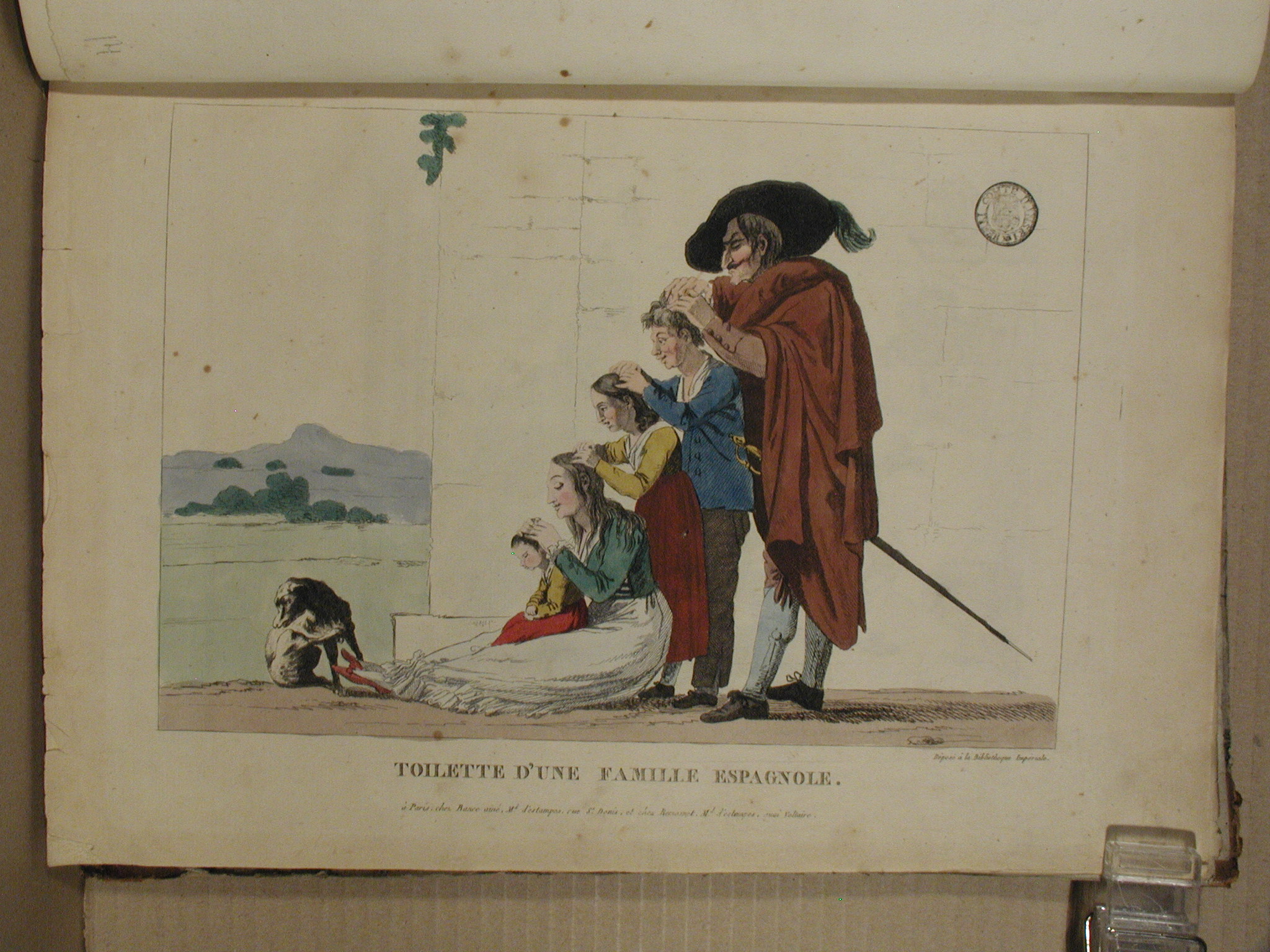 /Информацiя об оригiнале: Під зображенням праворуч: «Déposé à la Bibliothèque Impériale». В центрі назва французькою мовою: «TOILETTE D'UNE FAMILLE ESPAGNOLE». Нижче: «à Paris chez Bance aîné, Md d'Estampes, rue St Denis, et chez Remosnet, Md d'Estampes, quai Voltaire»./Аналогіi: 1.British museum. «Graduation de la famille Anglaise», Paris, 1816; Registration number: 1866,0407.939; AN99840001;