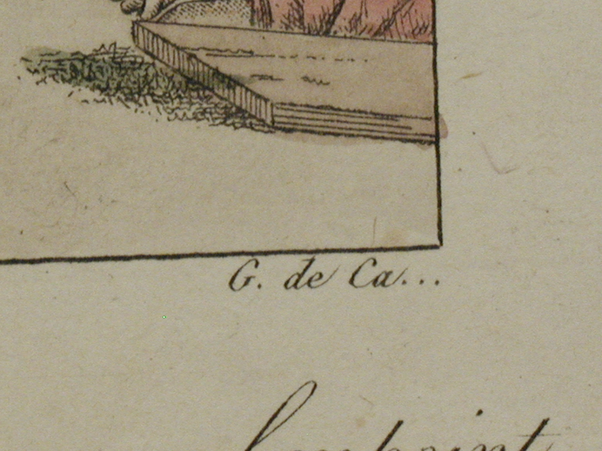 Закладка “Атрибуція” - Змiн. назва: Від’їзд./Наим. предмета, издания: гравюра/Змiн.Розміри дошки: 200х262/Змiн.розміри листа: 250х330/Змiн. авторські пiдписи i написи: Унизу назва: «Le Départ. Guéri du spleen par la Cuisine Française, l'Anglais retourne à Londres en embonpoint». «Від’їзд. Вилікуваний від спліну французькою кухнею англієць повертається до Лондону в гарному здоров’ї». Ліворуч унизу «Déposé…». У правому нижньому куті підпис Годісара де Карі : "G. de Ca…"./Змiн.опис: Ліворуч - гладкий англієць, який виходить з заїжджого двору, везучи свій величезний живіт на візку перед собою; праворуч - власник заїжджого двору, який тягне візок із животом англійця і витирає сльози ковпаком; біля правого краю – корабель./Змiн. Iншi написи, штампи, печатки, етикетки, наклейки: На зображенні у правому верхньому куті кругла чорна печатка «HENRI COMTE ILINSKI»/Змiн. час створення: 1814.Автор, автор съемки: Карі Годісар деИзм. предметный классификатор: гравюрамісце створення, школа: ФранціяНовый материал: папірИзм. техника: офортИзм. техника: розфарбований від руки