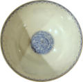 Потертості. По борту - навскісна тріщина. На тулові на зображенні скелі - невеликий відкол.,