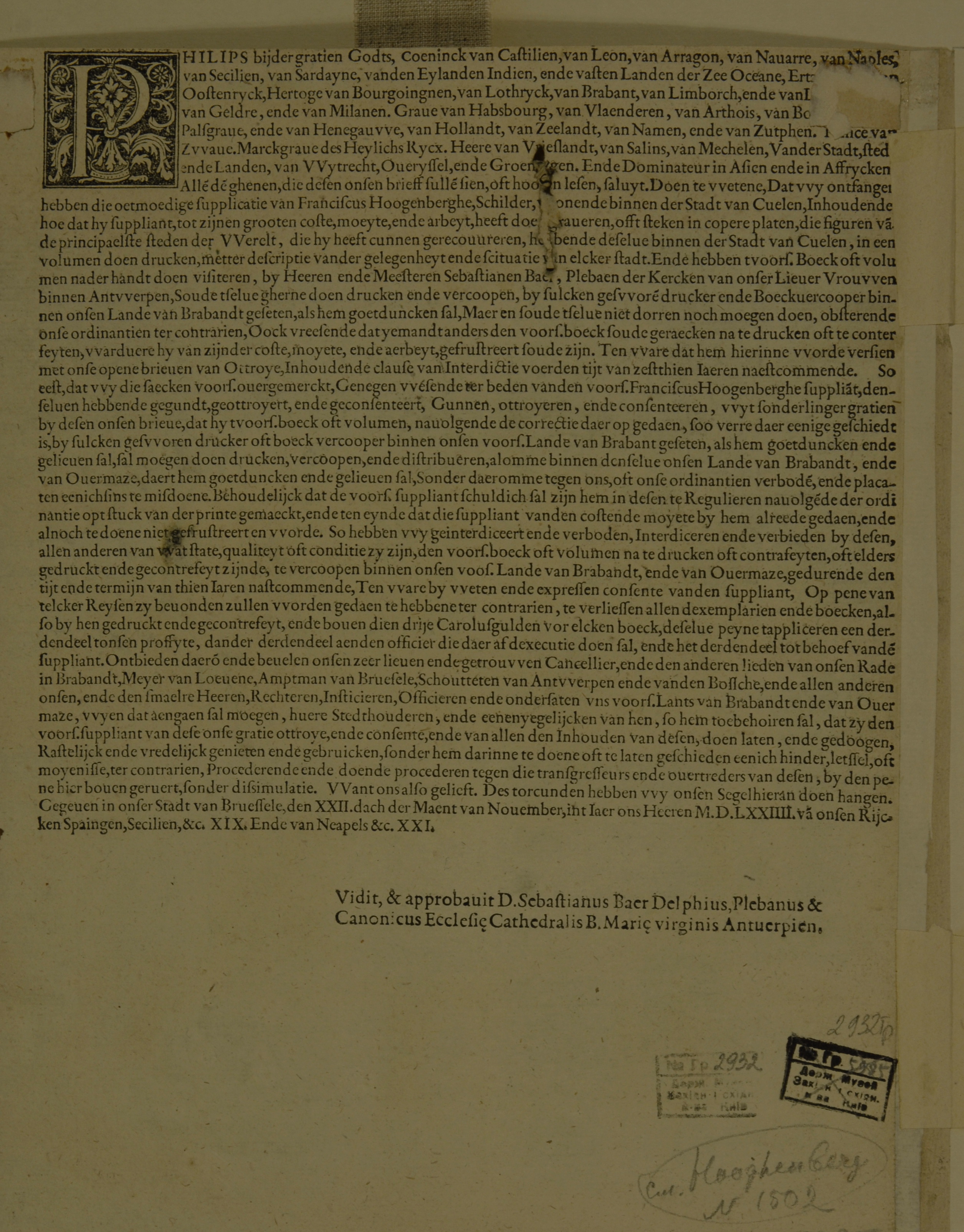 Закладка “Атрибуція” - Змiн. "на звороті": На звороті німецькою мовою готичним шрифтом коментар Георга Брауна: (Столицею Перу на півдні Нового Світу є Куско, місто настільки велике, могутнє і прекрасне, що воно легко посяде гідне місце серед найзначніших міст Іспанії та Франції […] Його вулиці зазвичай дуже прямі, з численними перехрестями і потоками, що течуть більшістю вулиць. Особливою окрасою міста є чудовий палац, зведений на крутому пагорбі, подібного якому немає в Європі).