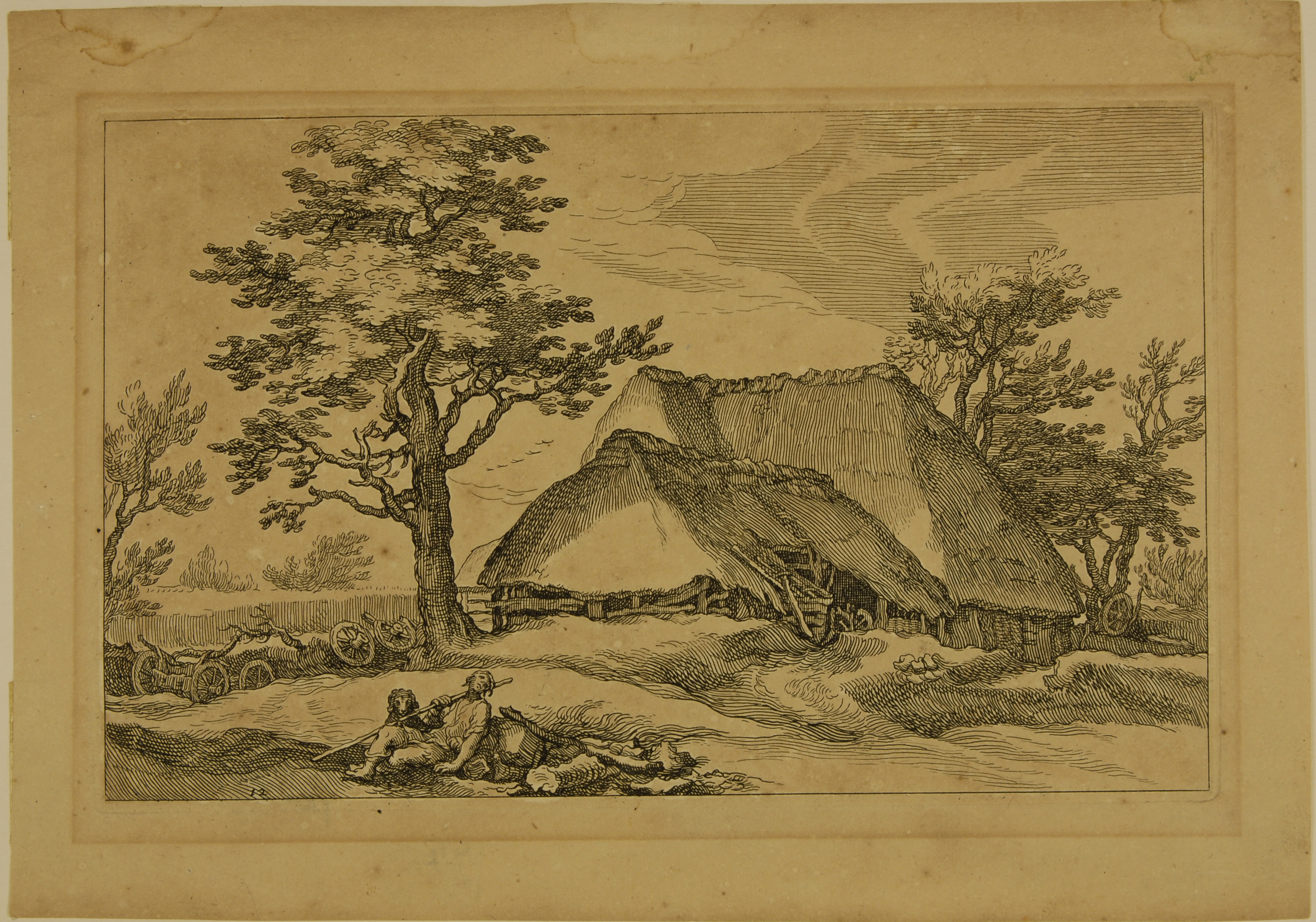 Пейзаж з сараєм і деревами.
