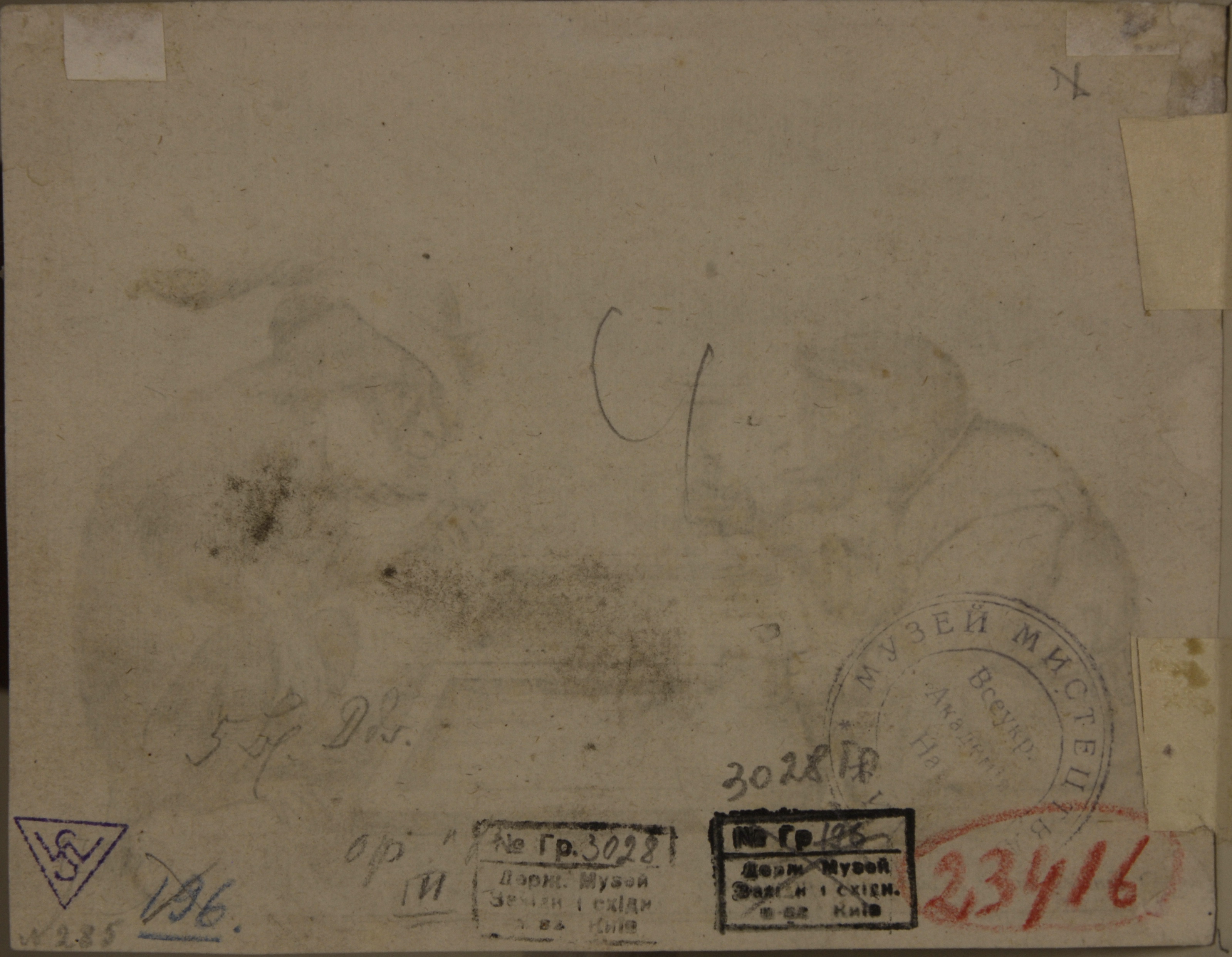Поля обрізані. На звороті сліди наклеєного паперу.,