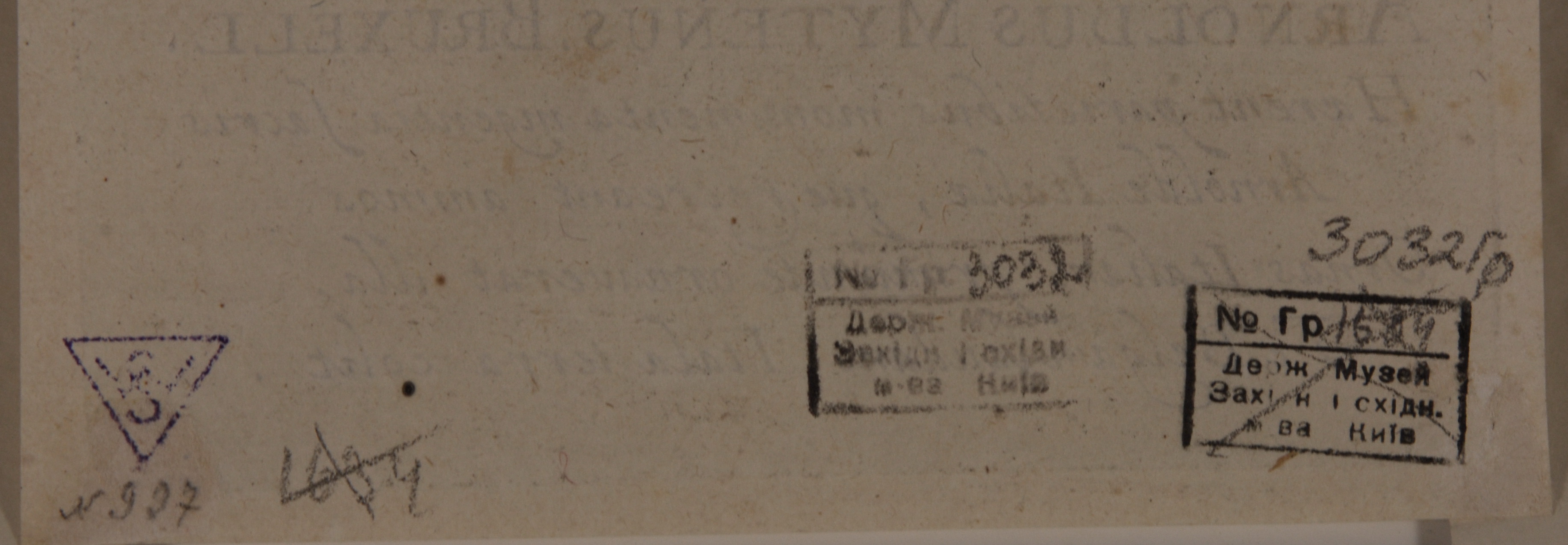 Поля обрізані, плями, легке короблення, зі звороту по кутах сліди наклеєного паперу.,