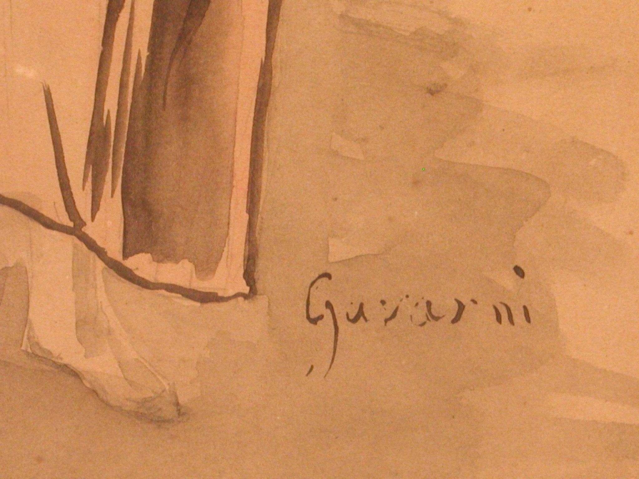 Авторські підписи, клейма: Угорі праворуч часть рел`єфної печаті та олівцем "2 F". На звороті паперова наклейка з № 6093. Ниже карандашом 2480 справа фиолетова печатка/Информацiя об оригiнале: Унизу праворуч підпис Gavarni./Кількість: 1