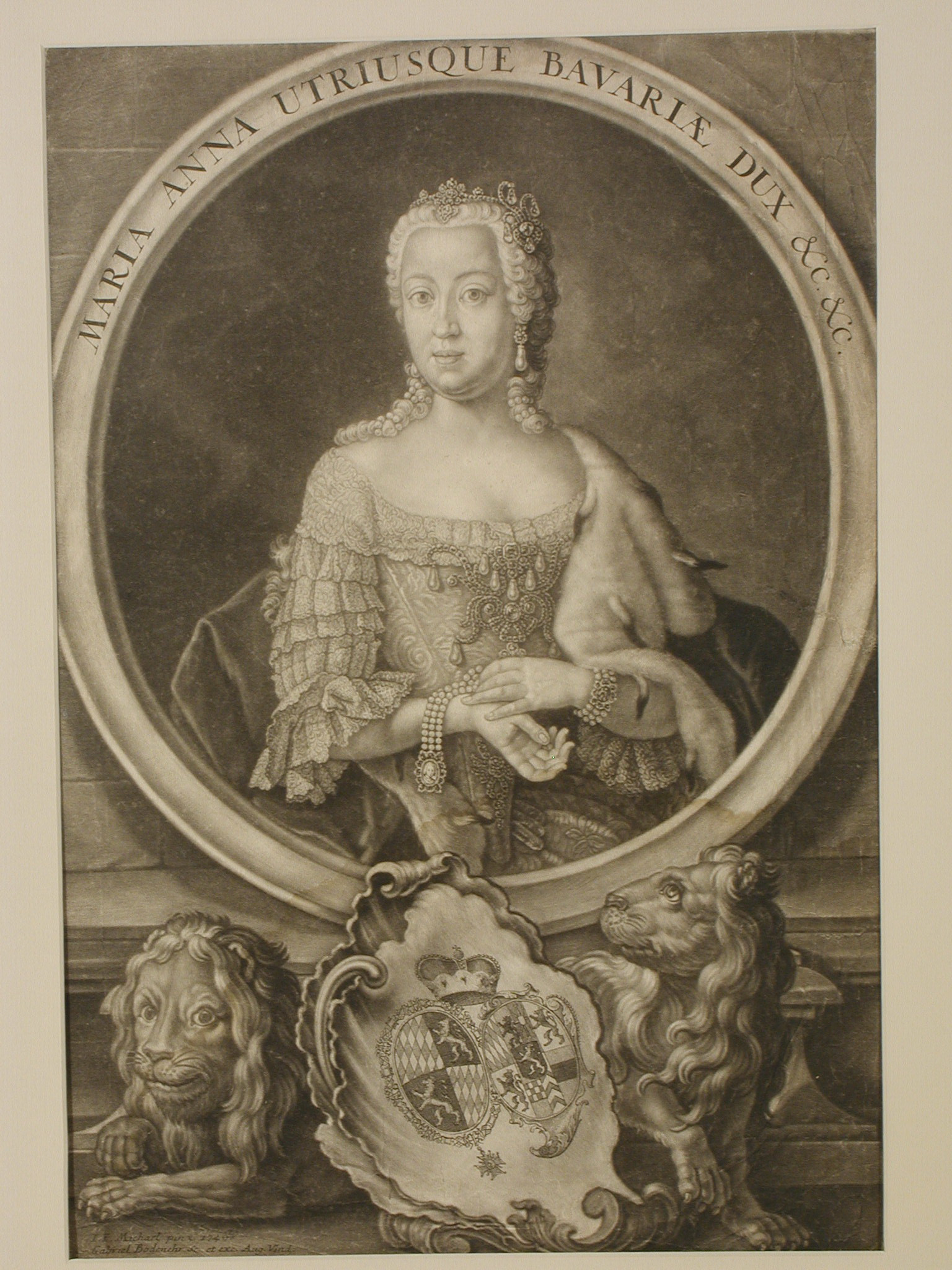 Информацiя об оригiнале: У новому паспарту./Информацiя об оригiнале: По периметру овальної рами з портретом текст: MARIA ANNA UTRIUSQUE BAVARIAE DUX. (Марія Анна обох Баварий герцогиня) Ліворуч унизу текст: I.I.Michael pinx. 1746 Gabriel Bodenehr sc. et exc. Aug. Vind./Кількість: 1/Внеш. особ. (в раме...): У новому паспарту
