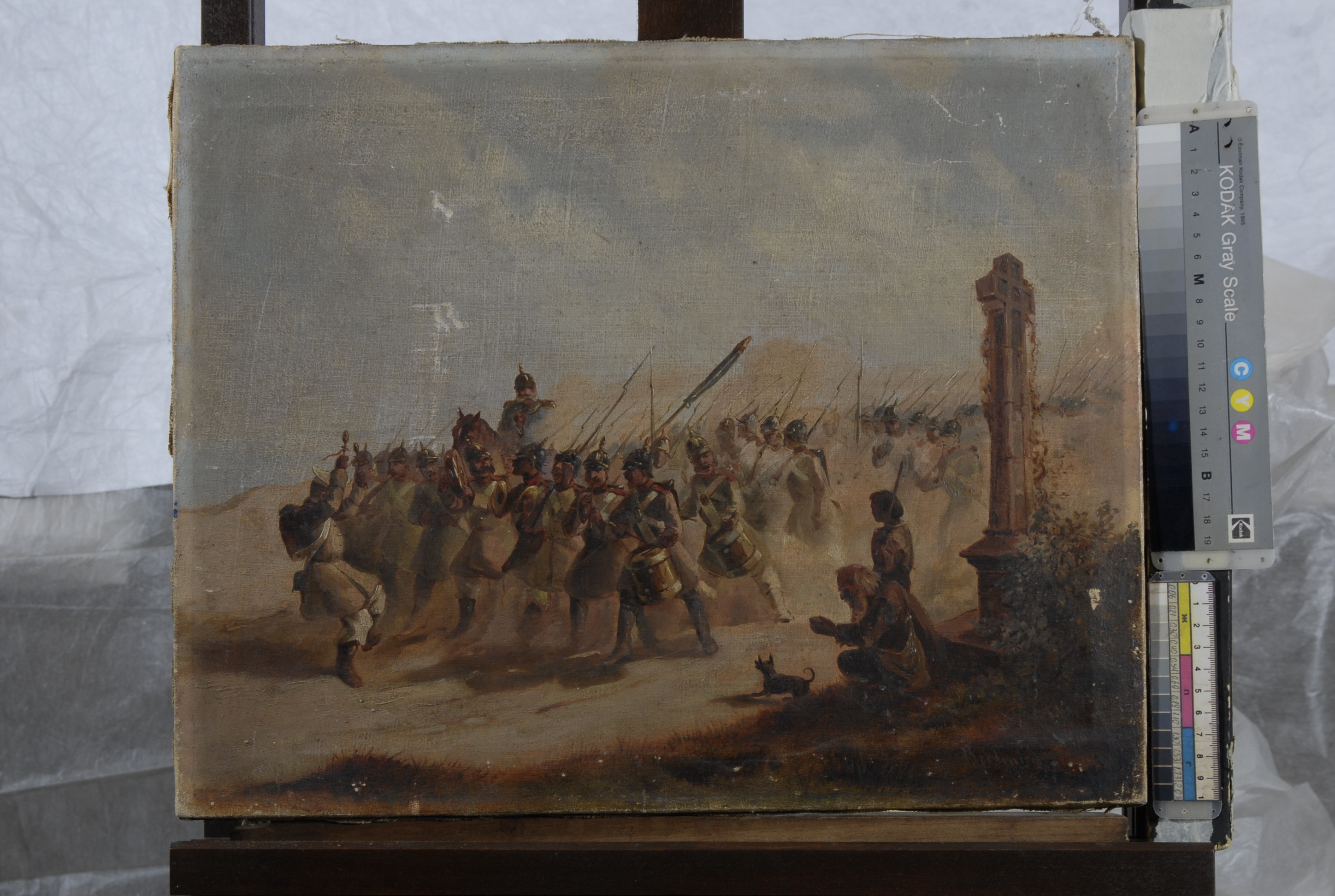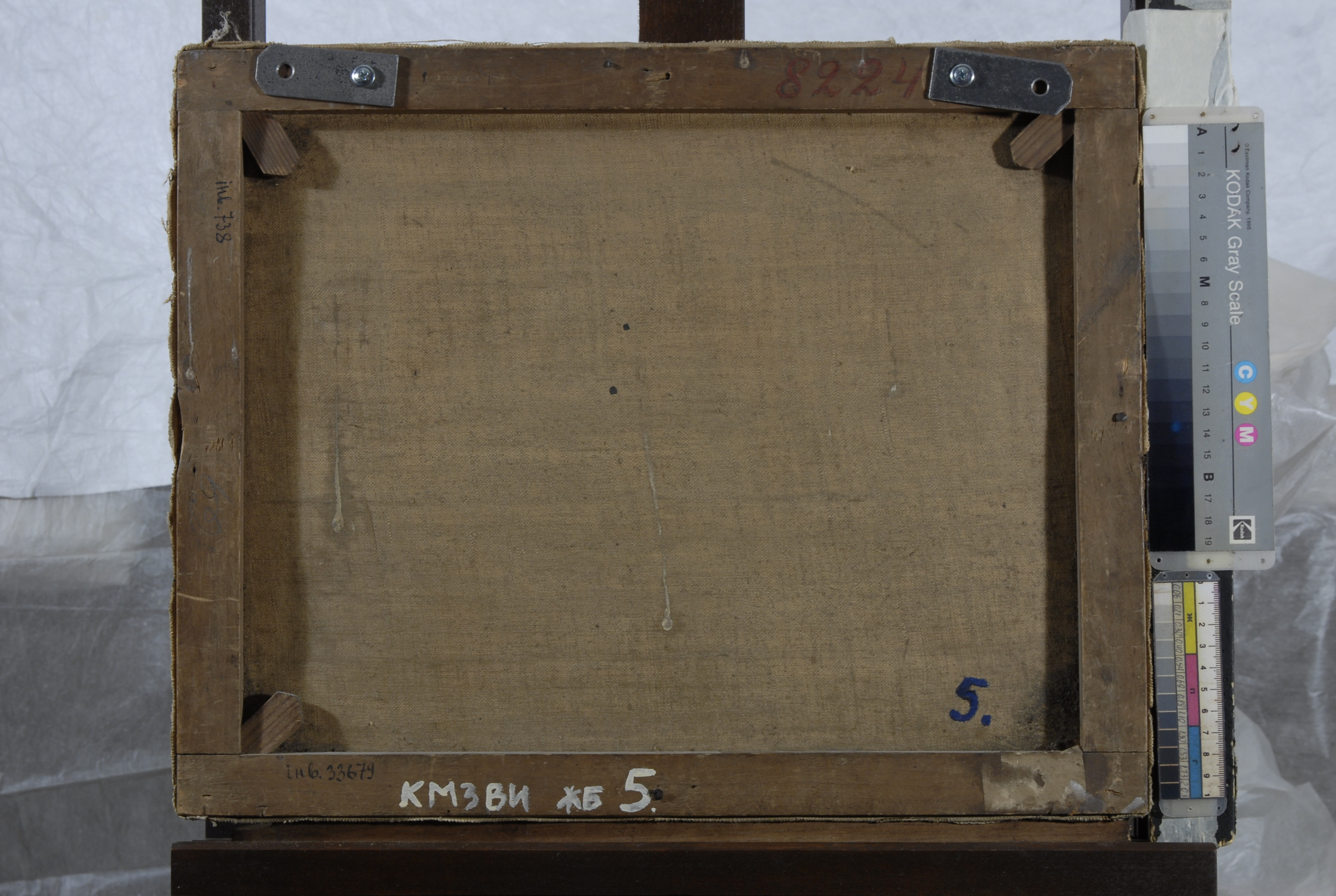Інвентар 1948р: У лівій частині незначна продавленість полотна з пошкодженням фарбового шару.,