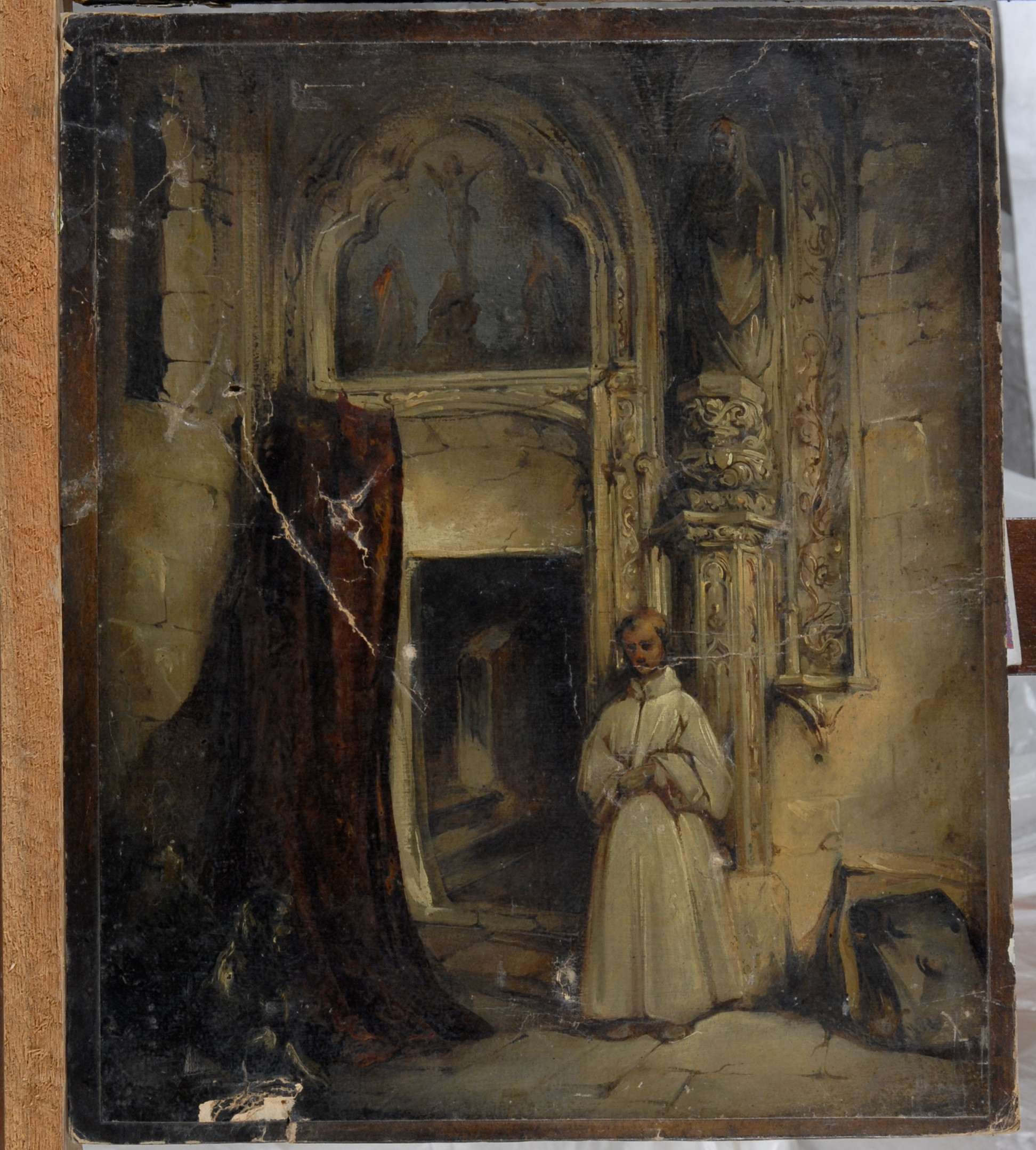 Інвентар 1948р.: у лівій частині картон продавлено в кількох місцях.,