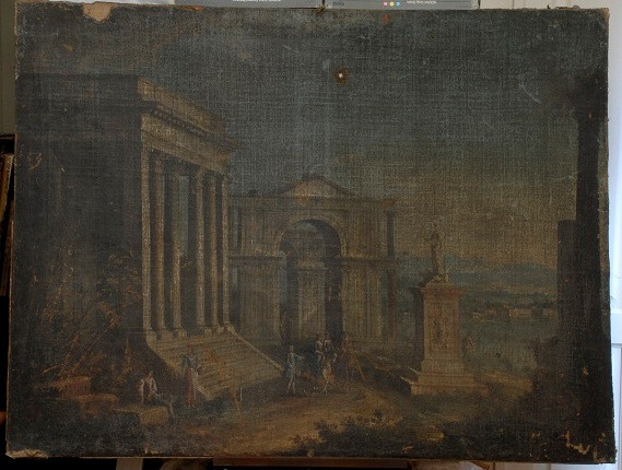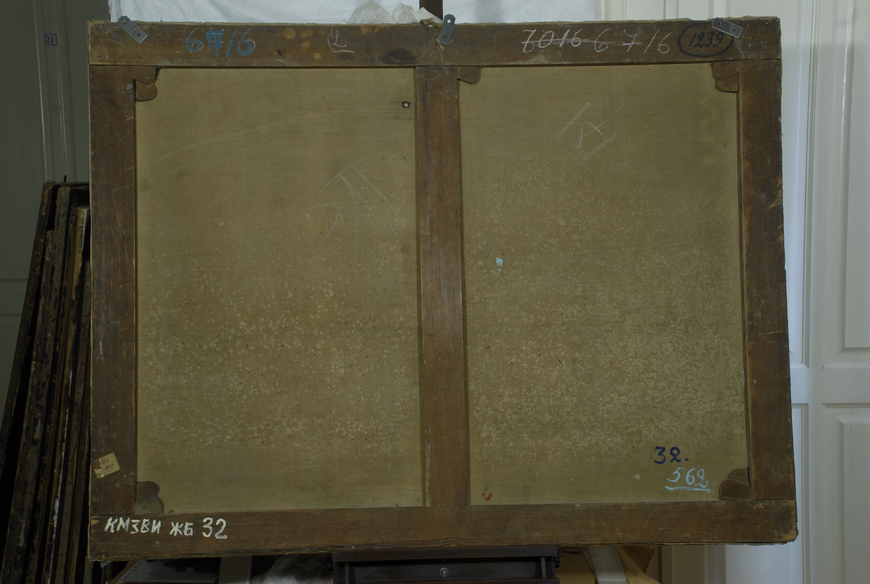 Інвентар 1948р.: дубльована. В багатьох місцях втрати фарбового шару до полотна. Подряпини, потертості, невеликі пробоїни.,