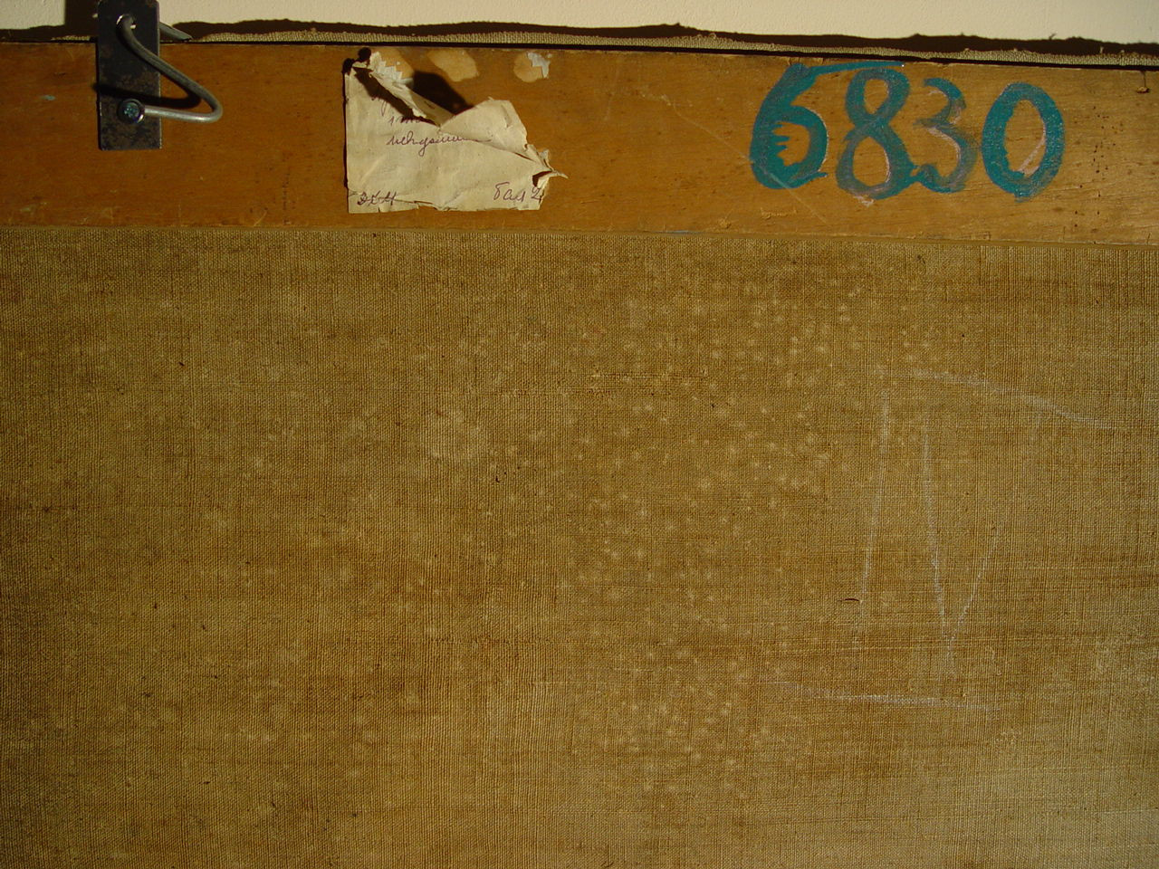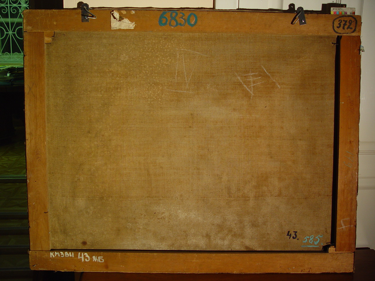 Інвентар 1948р.: дубльована, сильне потьмяніння фарб; сильне осипання фарбового шару, особливо угорі та у правій нижній частині картини.,