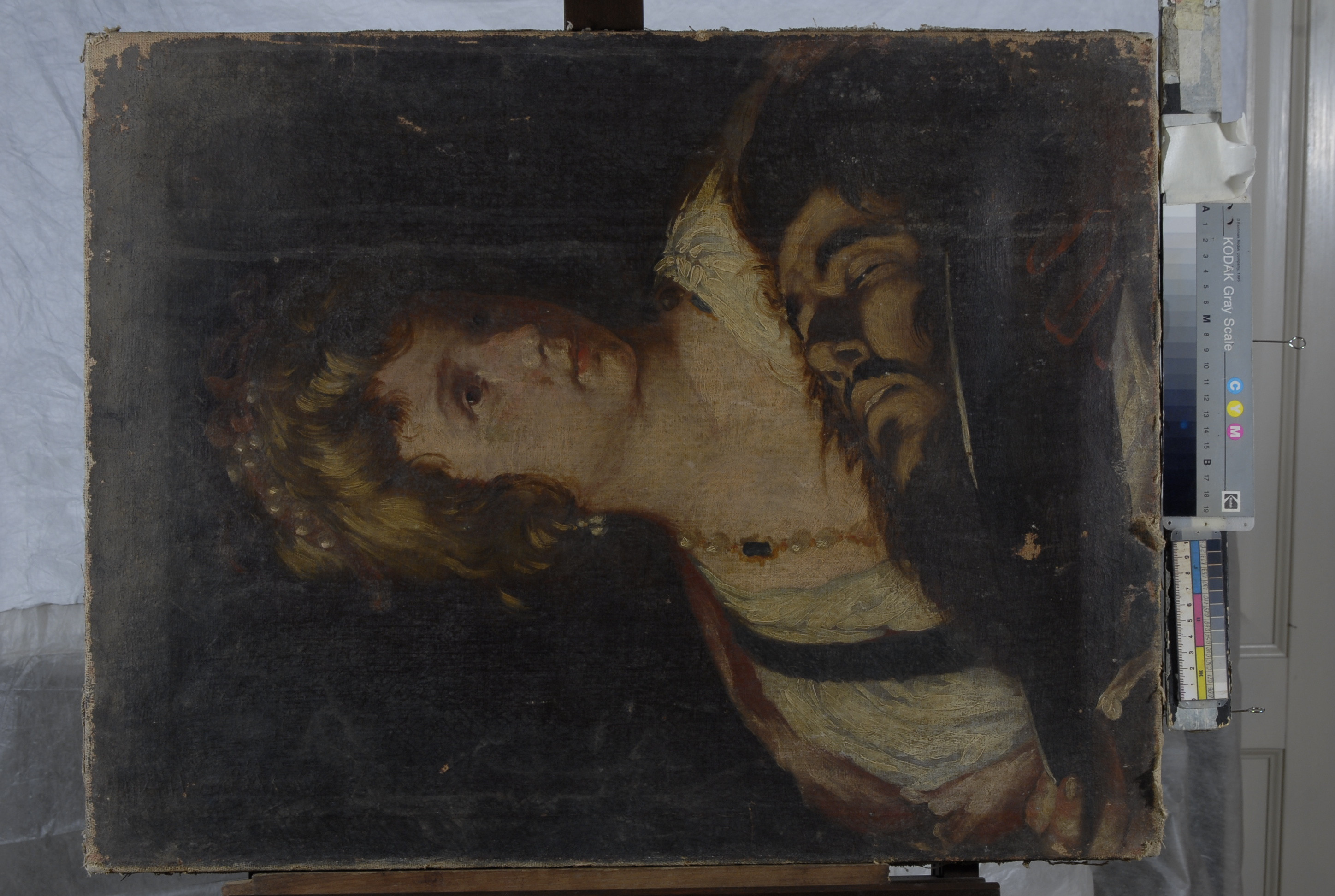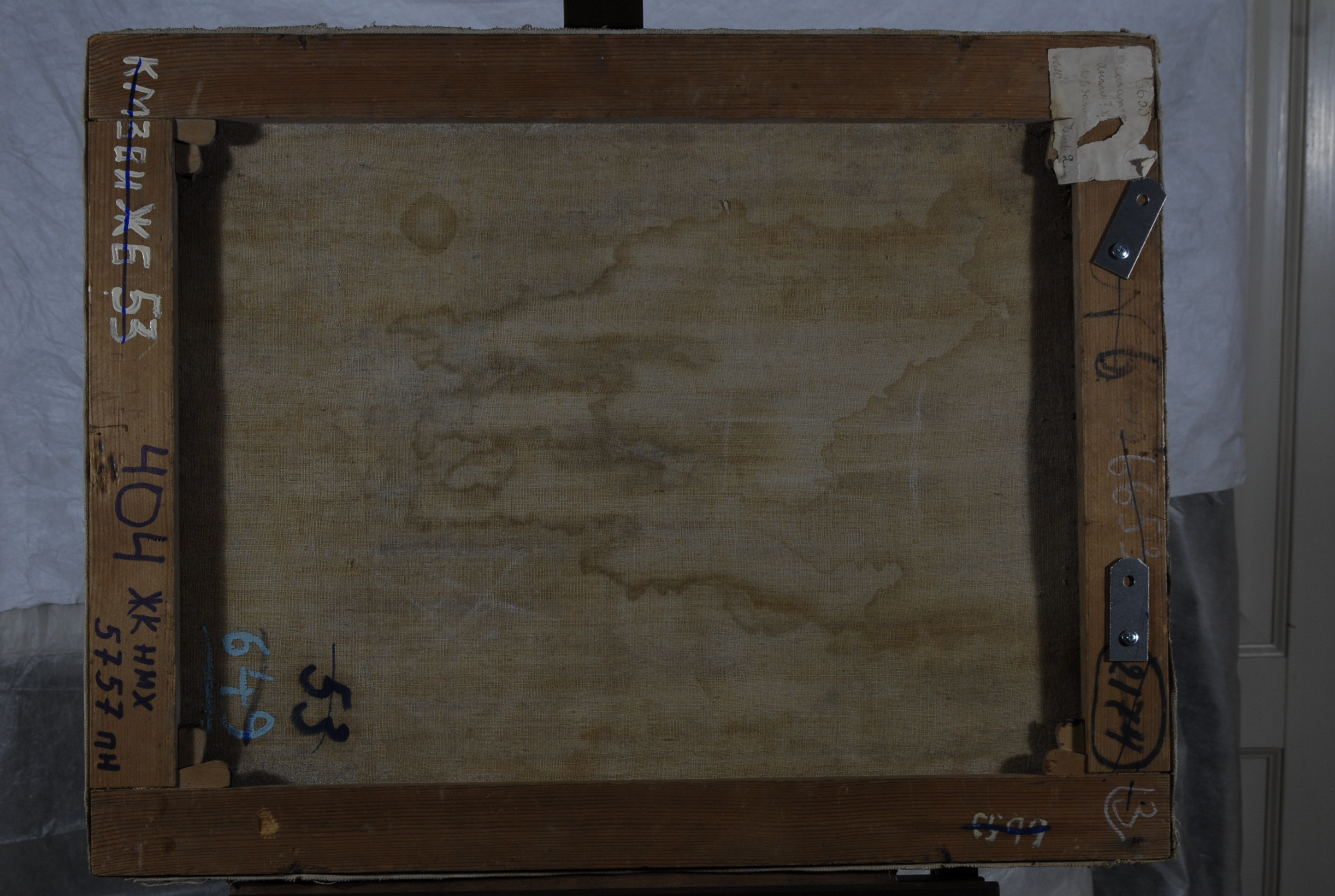Інвентар 1948р.: дубльована. Випадіння фарбового шару до полотна. Потертості.,