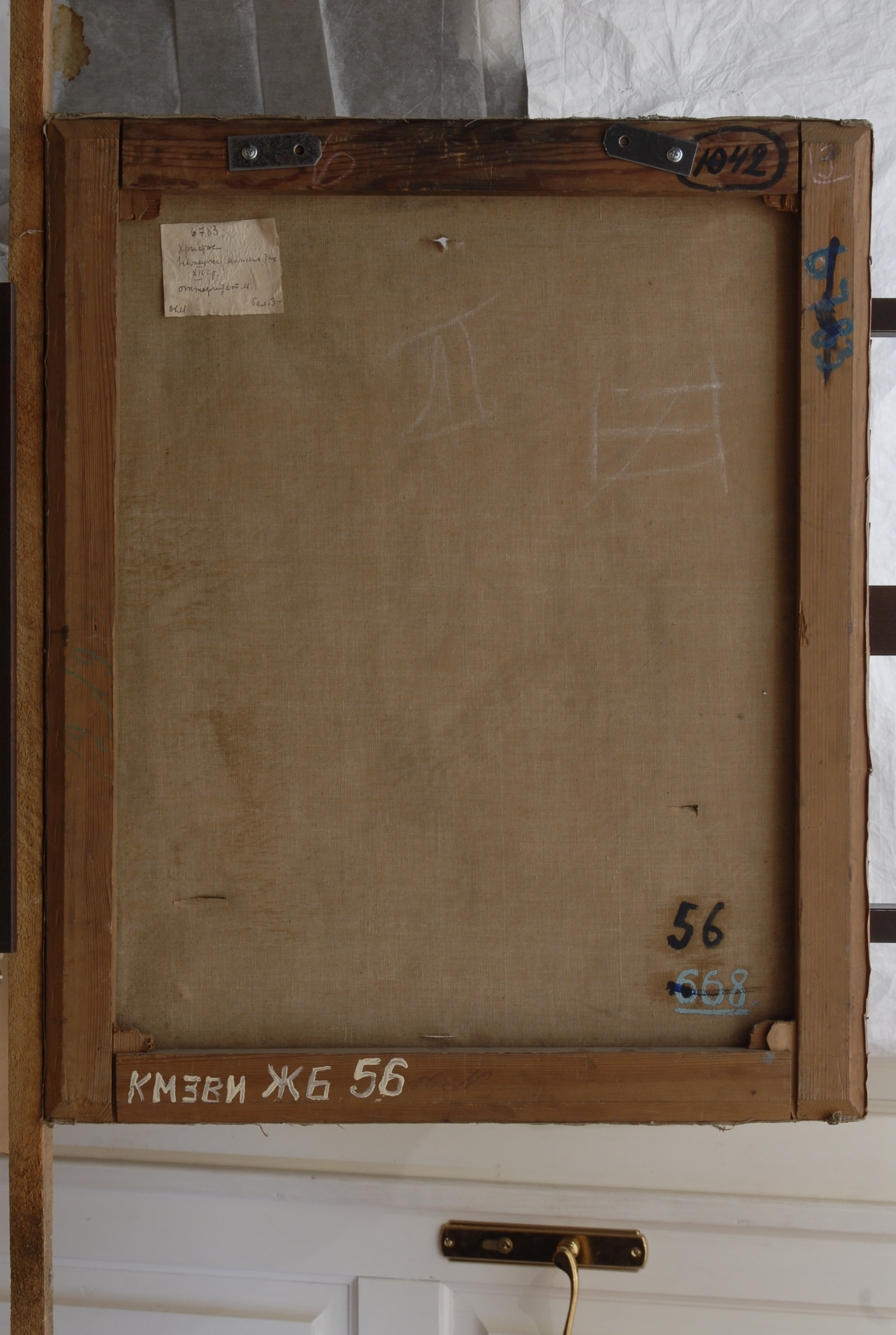 Інвентар 1948р.:потьмяніння фарбового шару, прориви у верхній частині.,