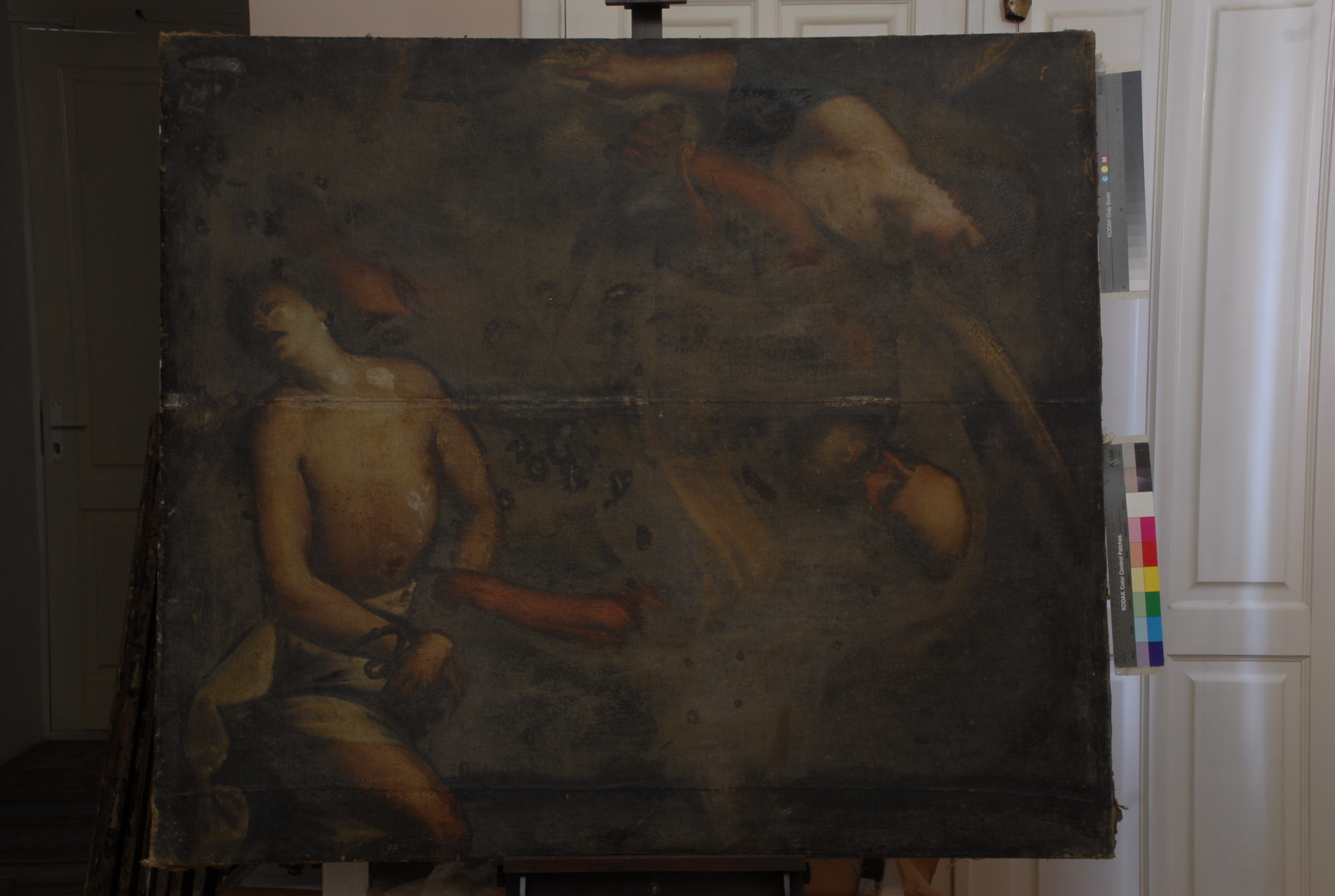 Інвентар 1948р.: сильний глибокий розклад лаку, відставання фарбового шару по всій поверхні.,