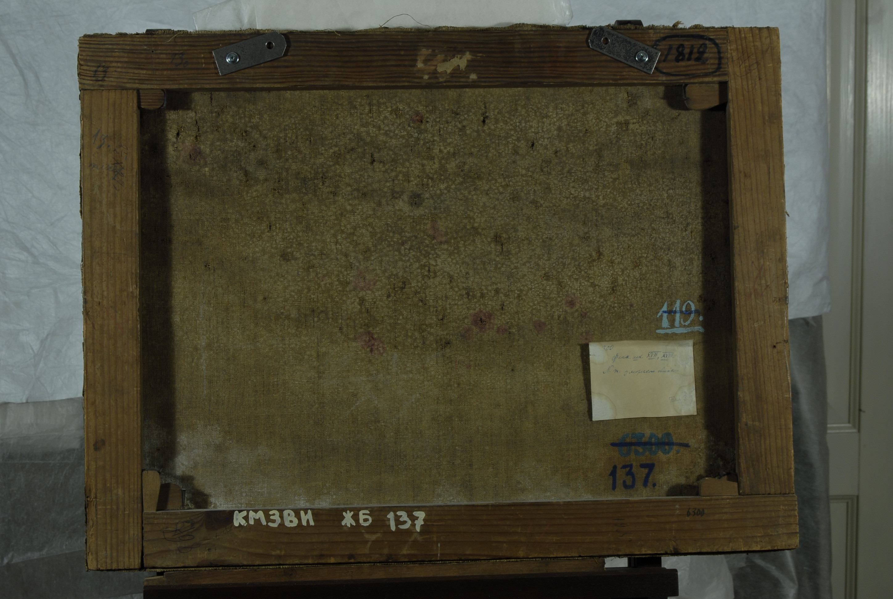 Інвентар 1948р.: сильне осипання фарбового шару та розклад лаку, особливо у верхній половині картини,