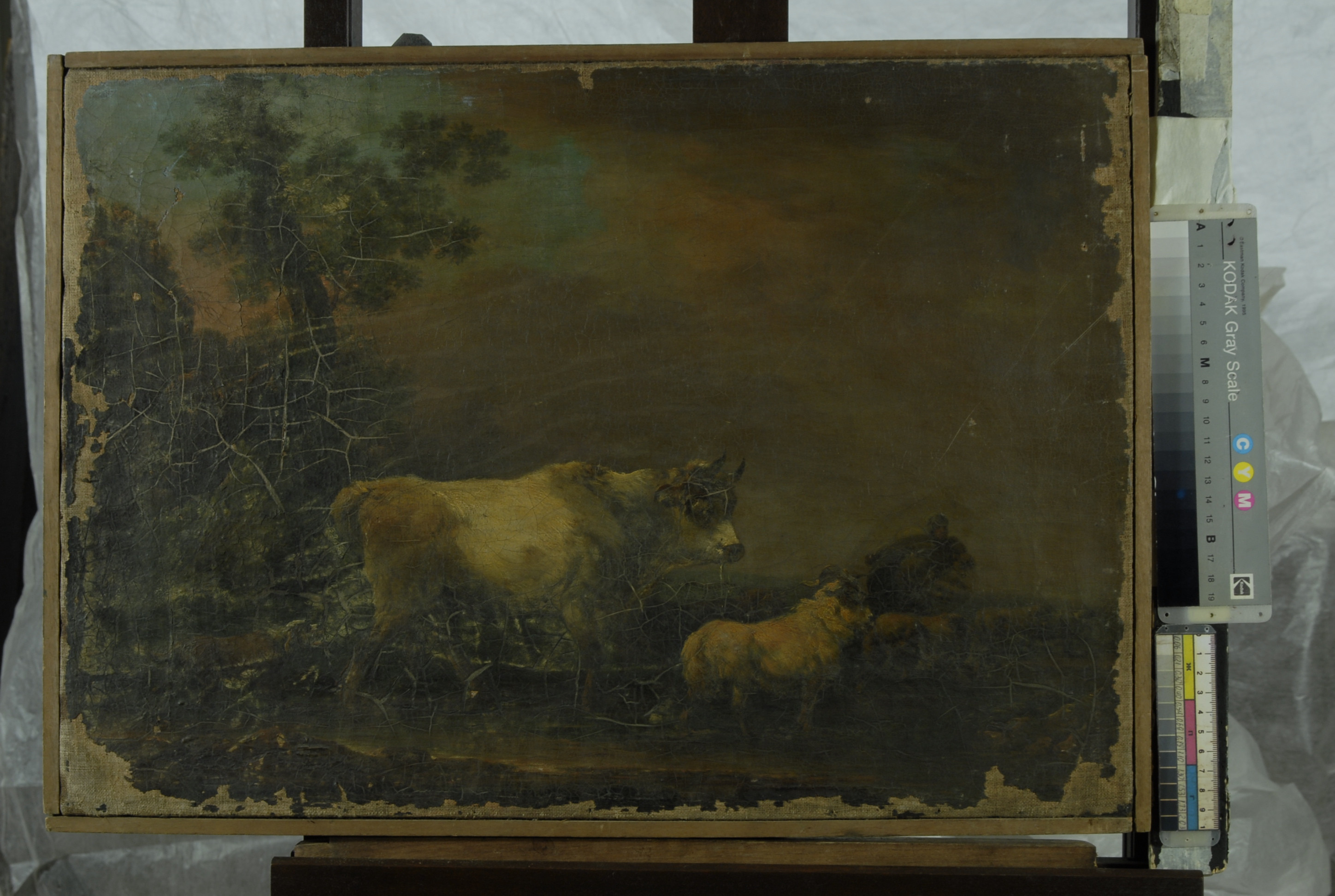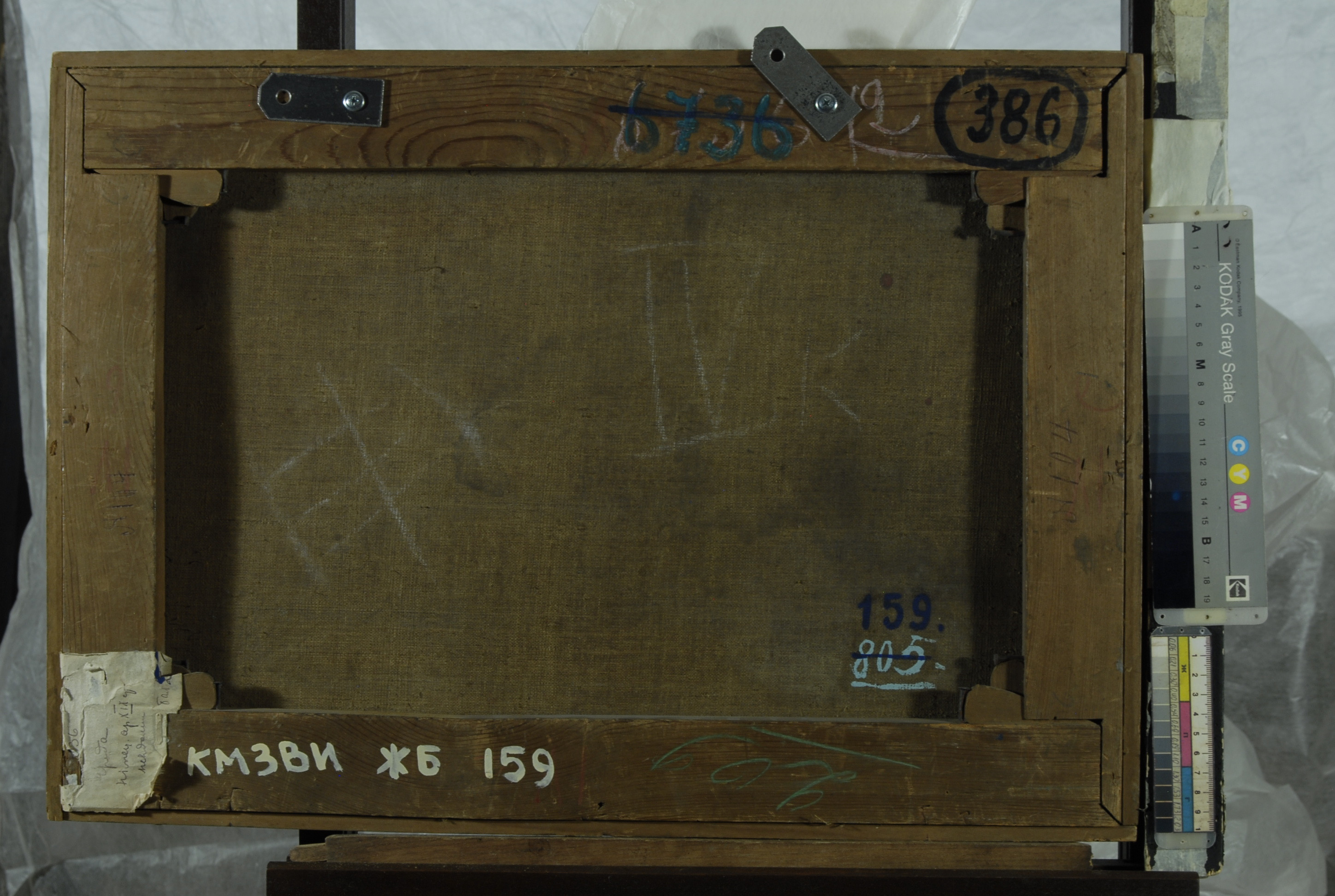Інвентар 1948р.: у правому куті випадіння фарбового шару. Кракелюри, що сильно розійшлися (особливо у лівій частині картини).,