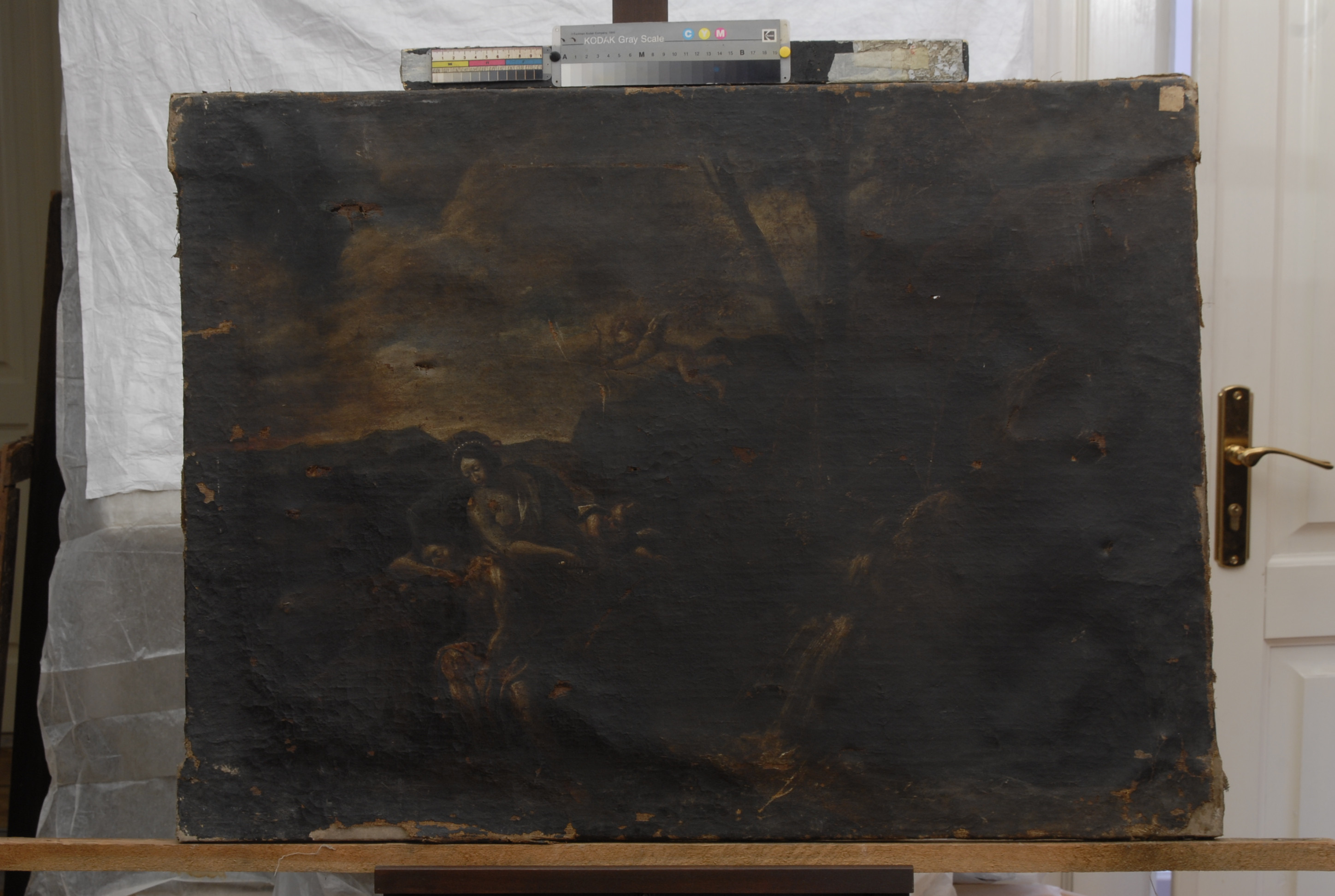 Інвентар 1948р.: дубльована; помутніння і забруднення лаку, випадіння фарбового шару, прорив в одному місці.,