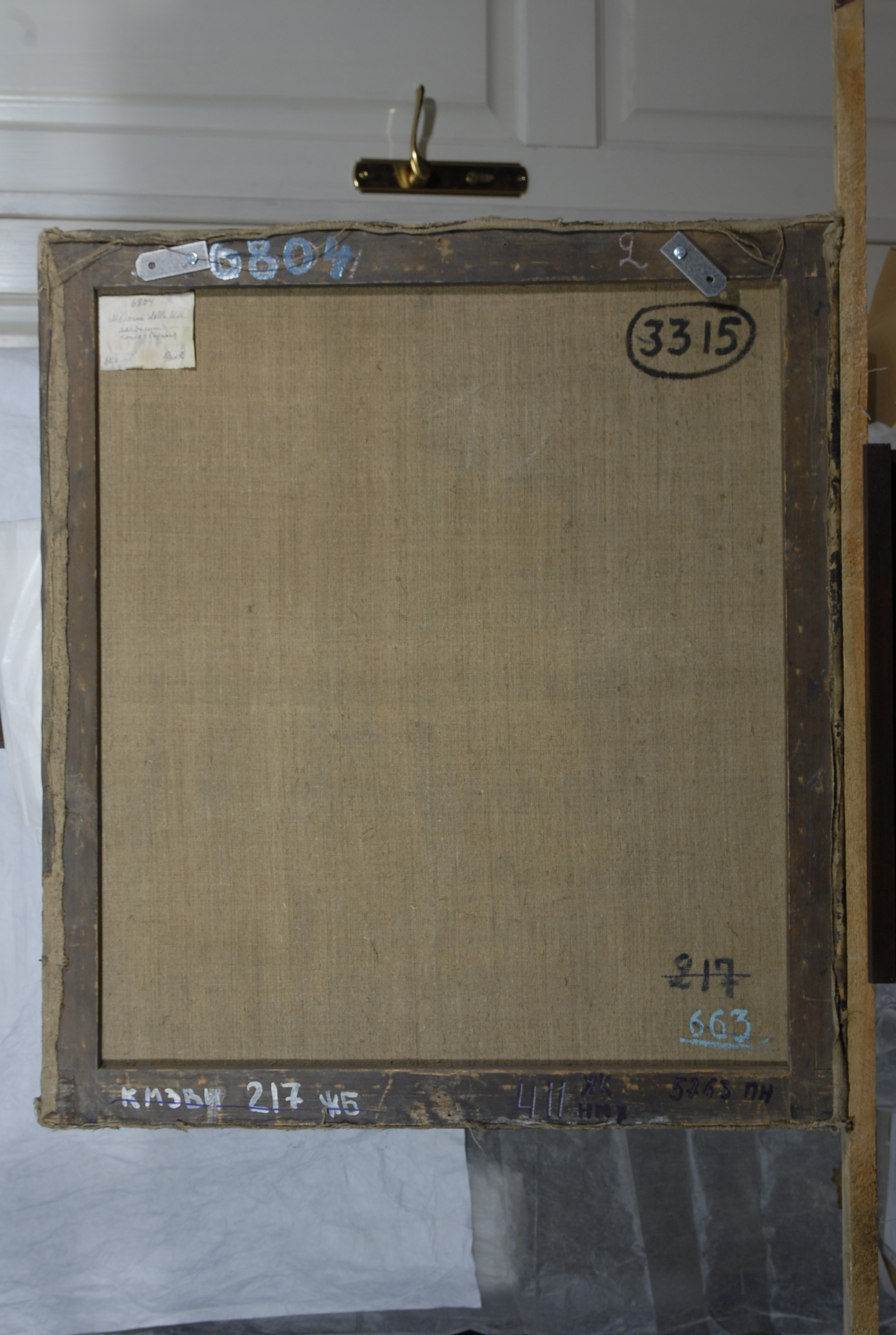 Інвентар 1948р.: дубльована; невеликі випадіння фарби. Деяке помутніння і забруднення лаку.,