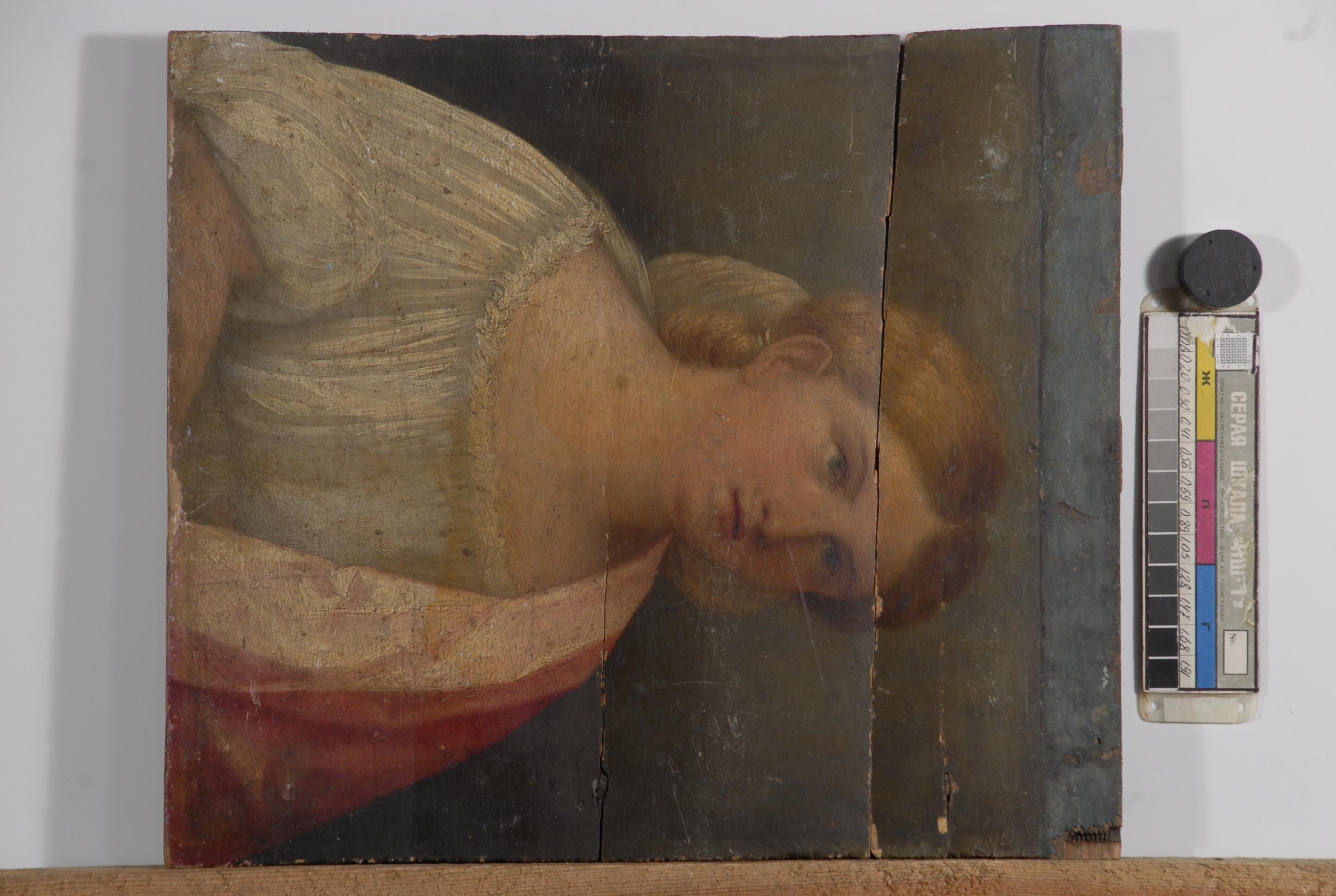 Інвентар 1948р.: у верхній частині дошка розколота, неглибокі подряпини.,