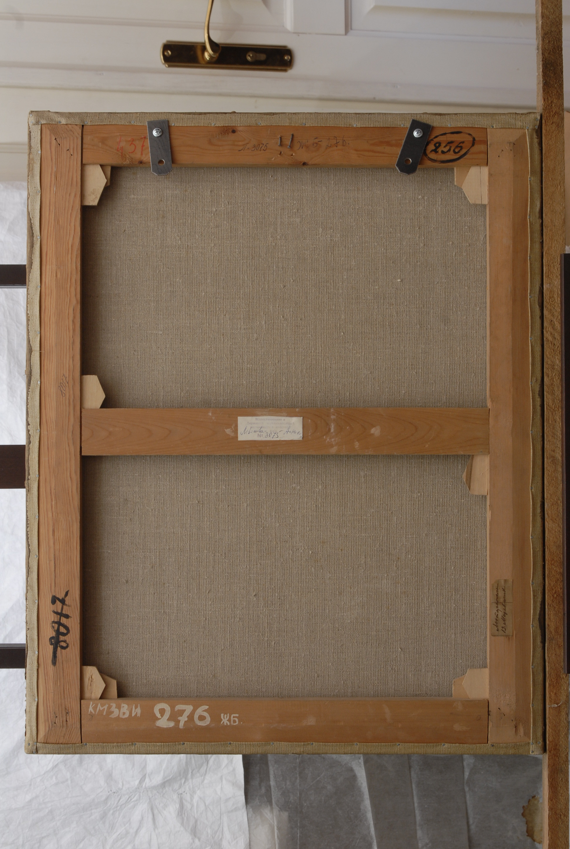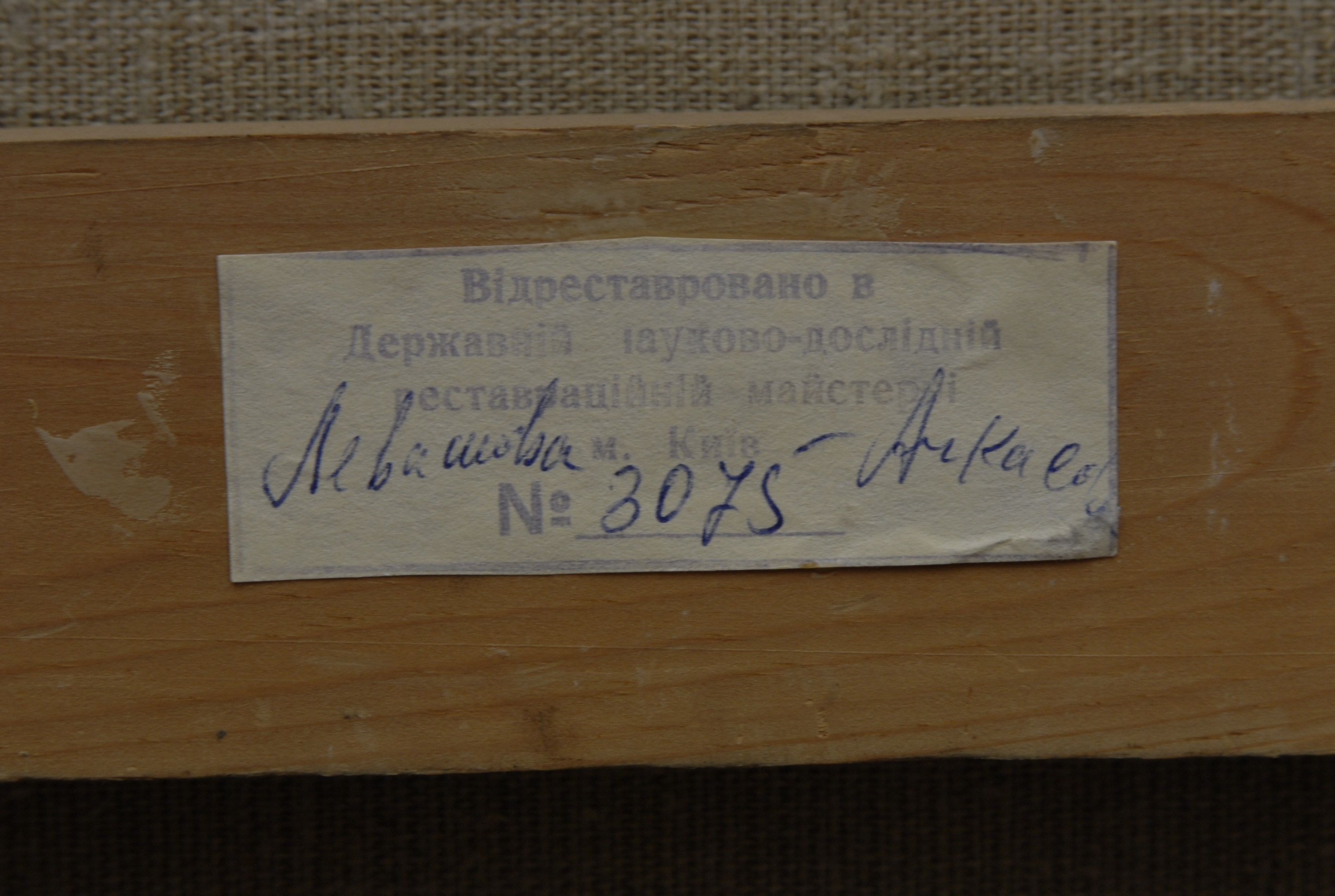 Інвентар 1948р.: окремі подряпини; вдавлене полотно вздовж підрамника.,