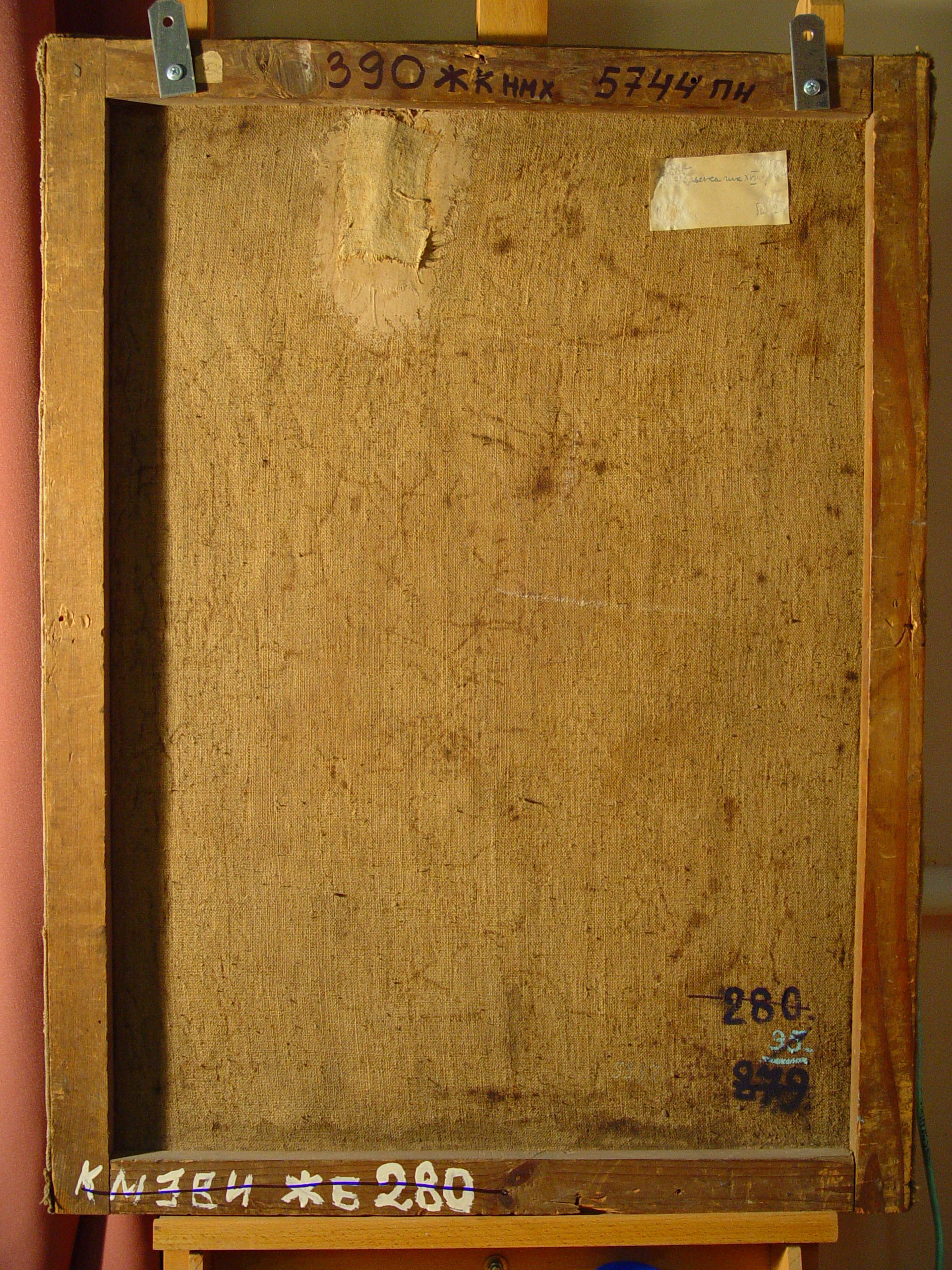 На підрамку: паперова наклейка з цифрою «5» горішковим чорнилом; «КМЗВИ ЖБ 280» - білою фарбою.