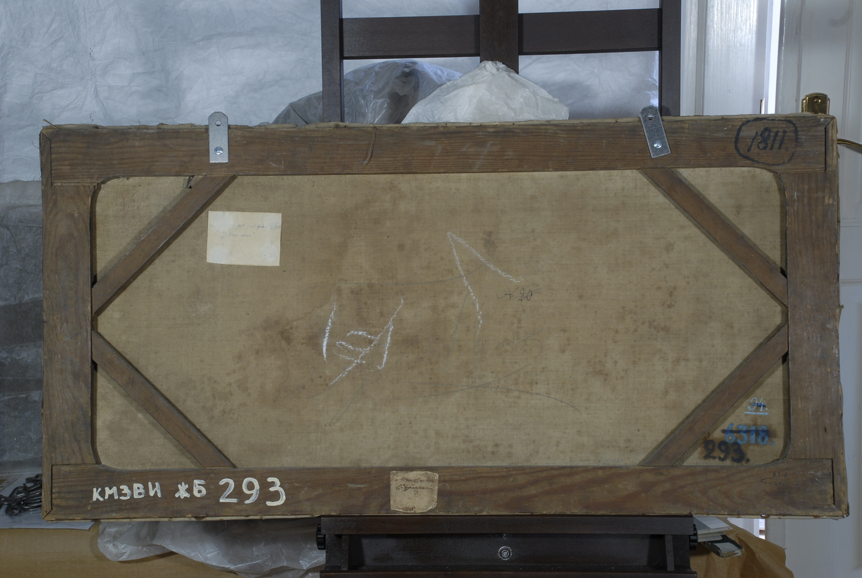 Інвентар 1948р.: погана збереженість. Краї відстають від дубляжу, розірвані. Праворуч угорі сильний розклад лаку.,