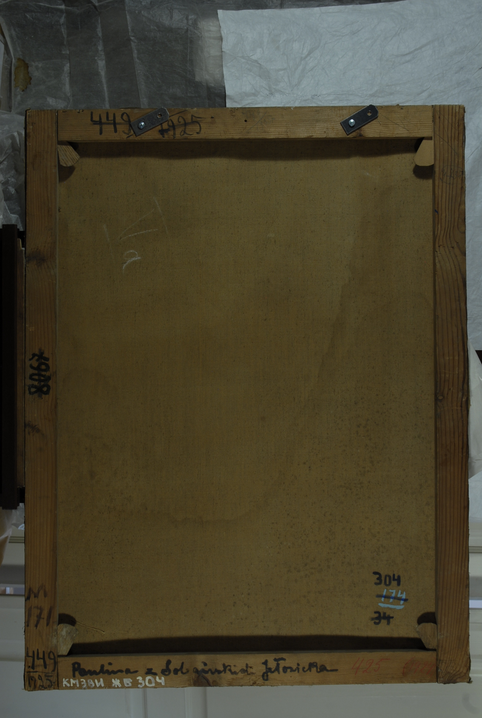 Інвентар 1948р.: окремі ввипадіння фарбового шару вздовж правого бортика картини.,