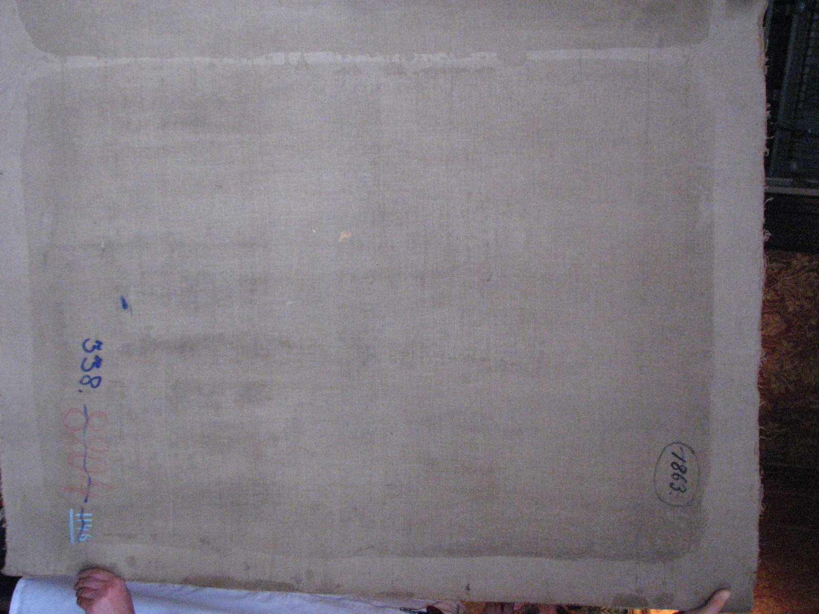 Інвентар 1948р.: без підрамника; по всій поверхні осипання фарби до грунту, злами, подряпини.,