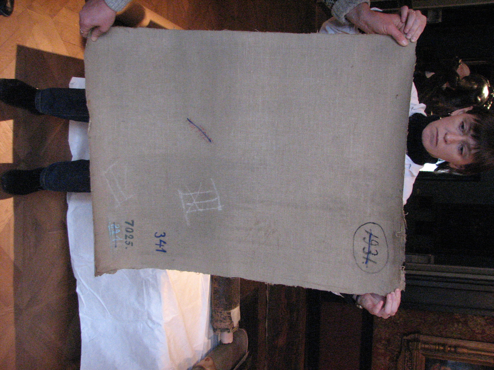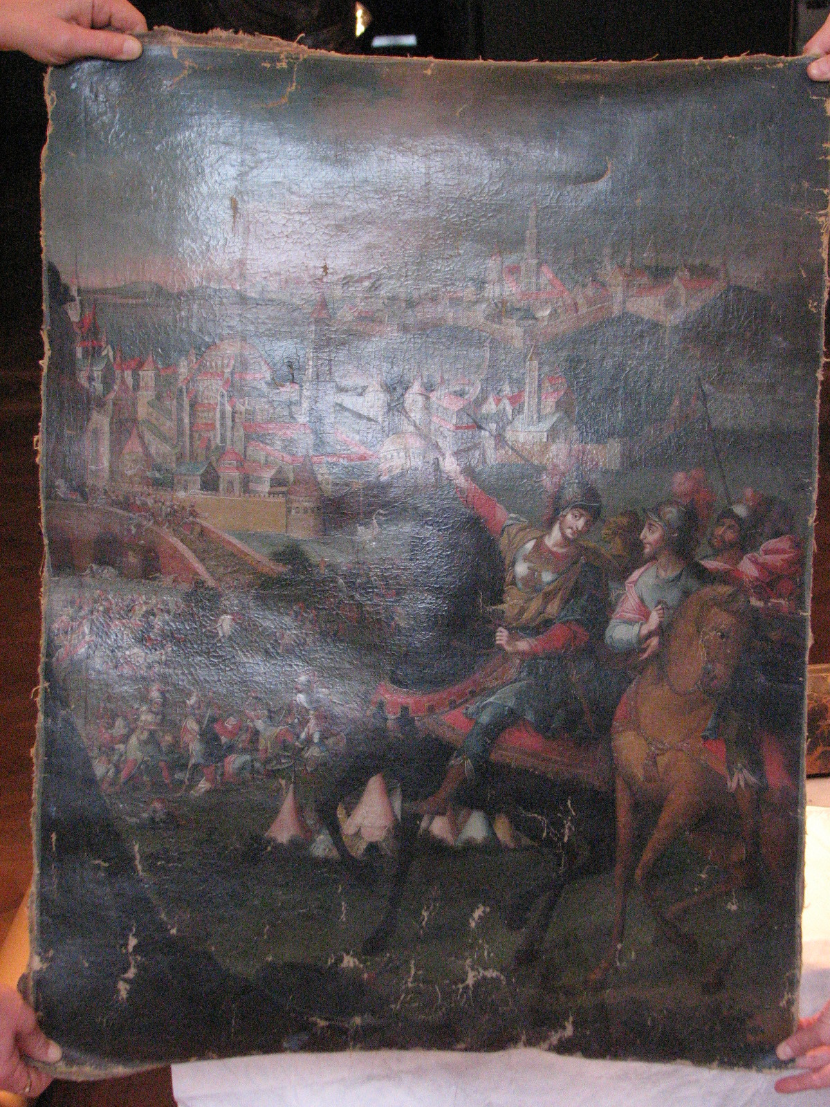 Інвентар 1948р.: без підрамника, дубльована. Осипання фарбового шару, злами, потертості по краях, особливо у нижній частині.,
