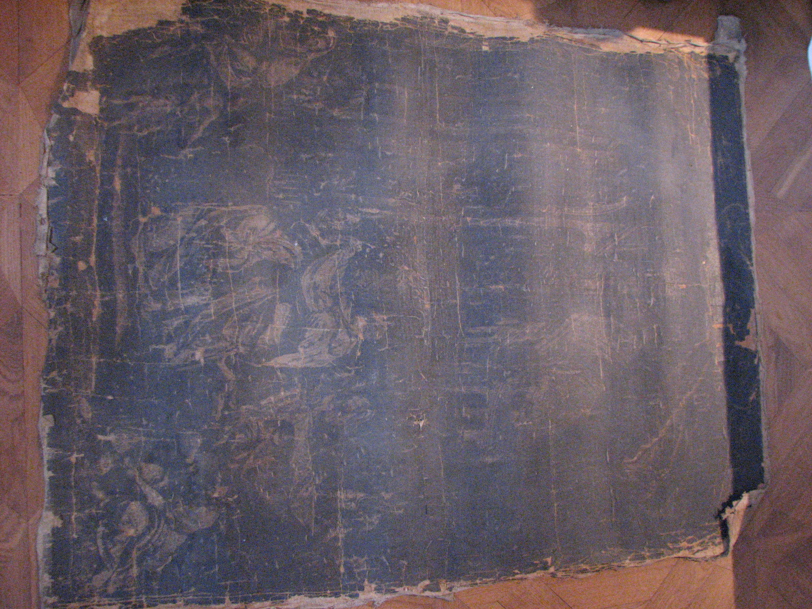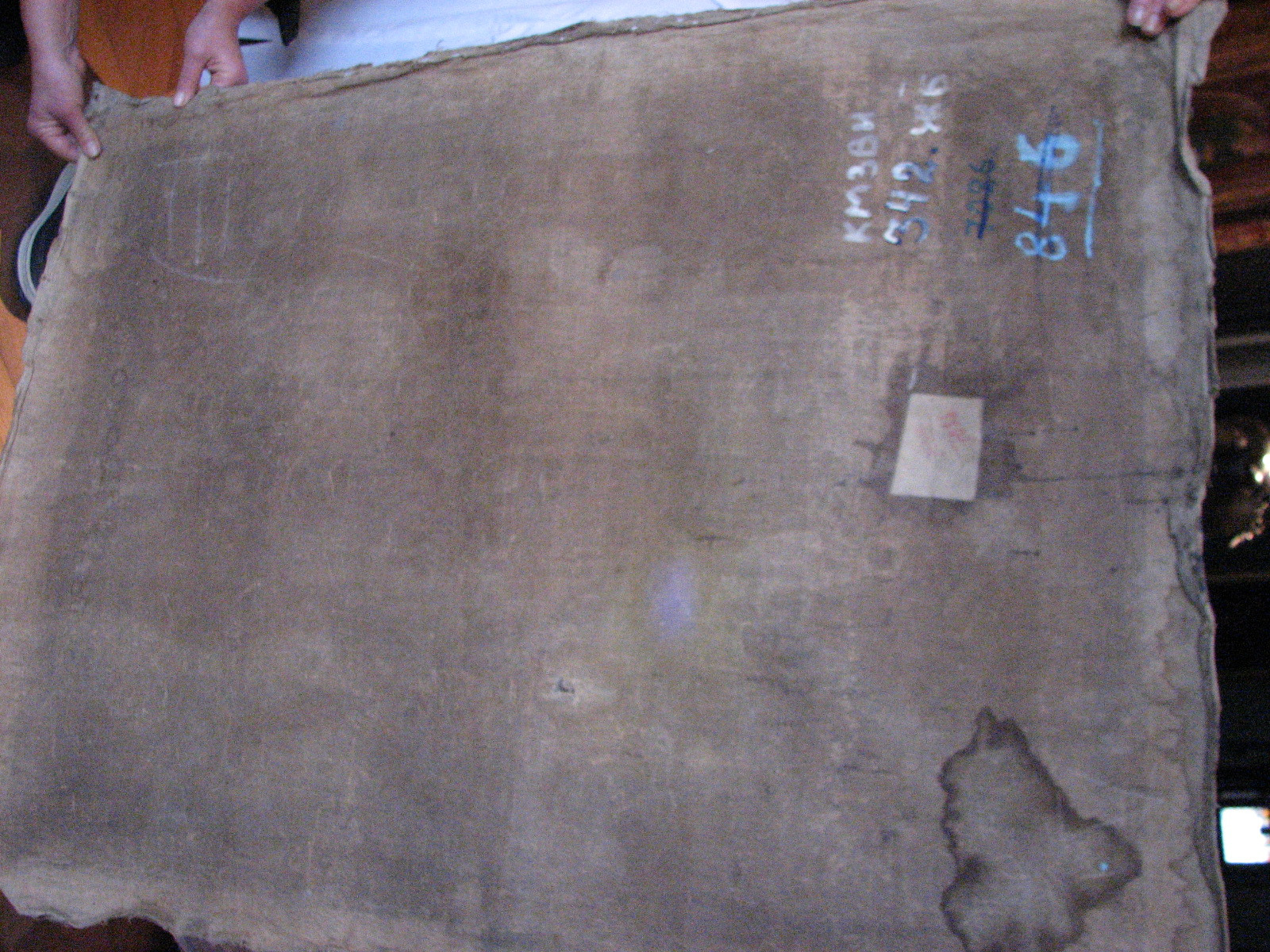 Інвентар 1948р.: без підрамника, дубльована; сильне потемніння, злами, випадіння фарби, потертості, у кількох місцях прориви.,