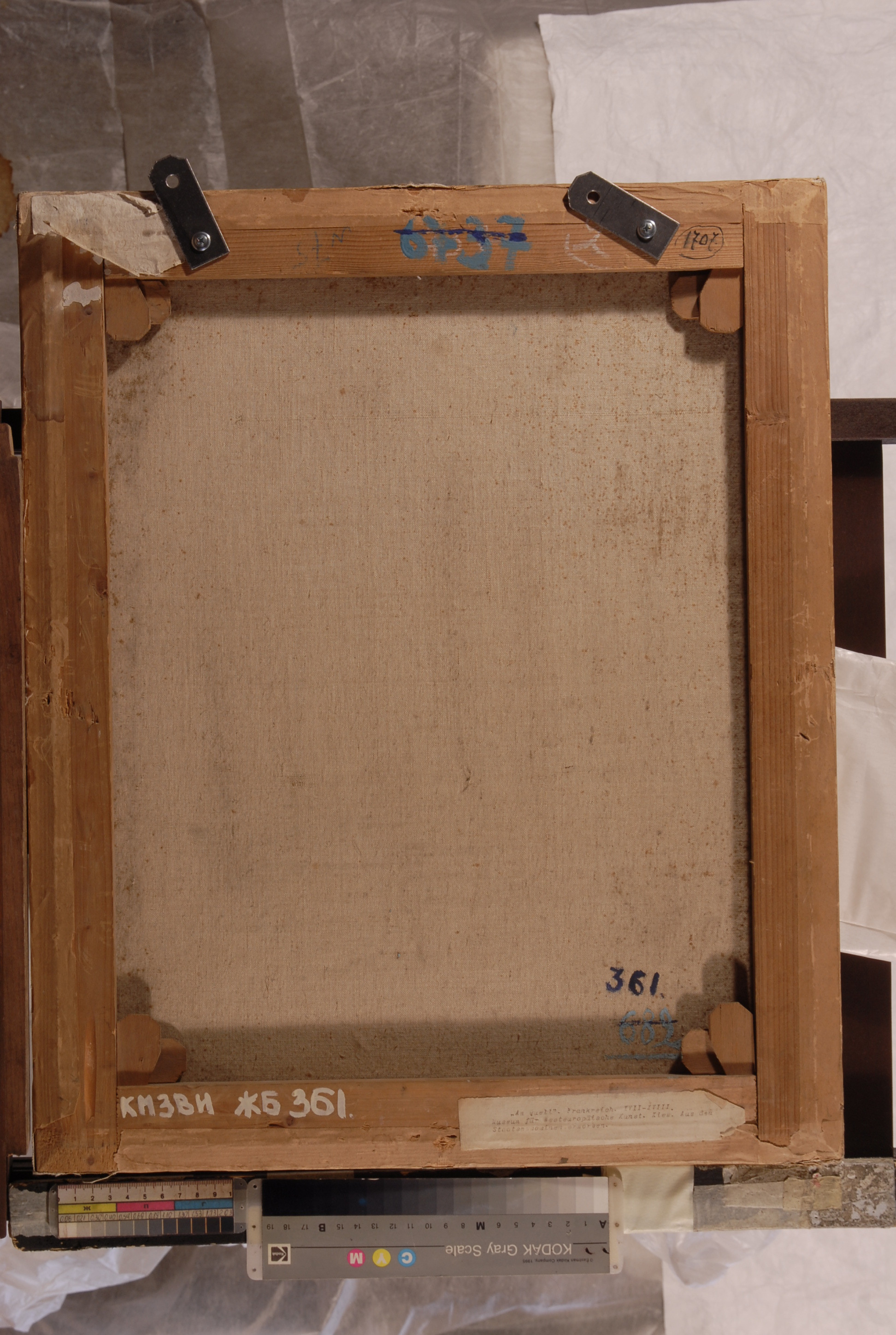 Інвентар 1948р.: дубльована. Стан незадовільний. По всій поверхні сліди реставраційних заправок. Внизу велика подряпина з випадінням фарбового шару.,