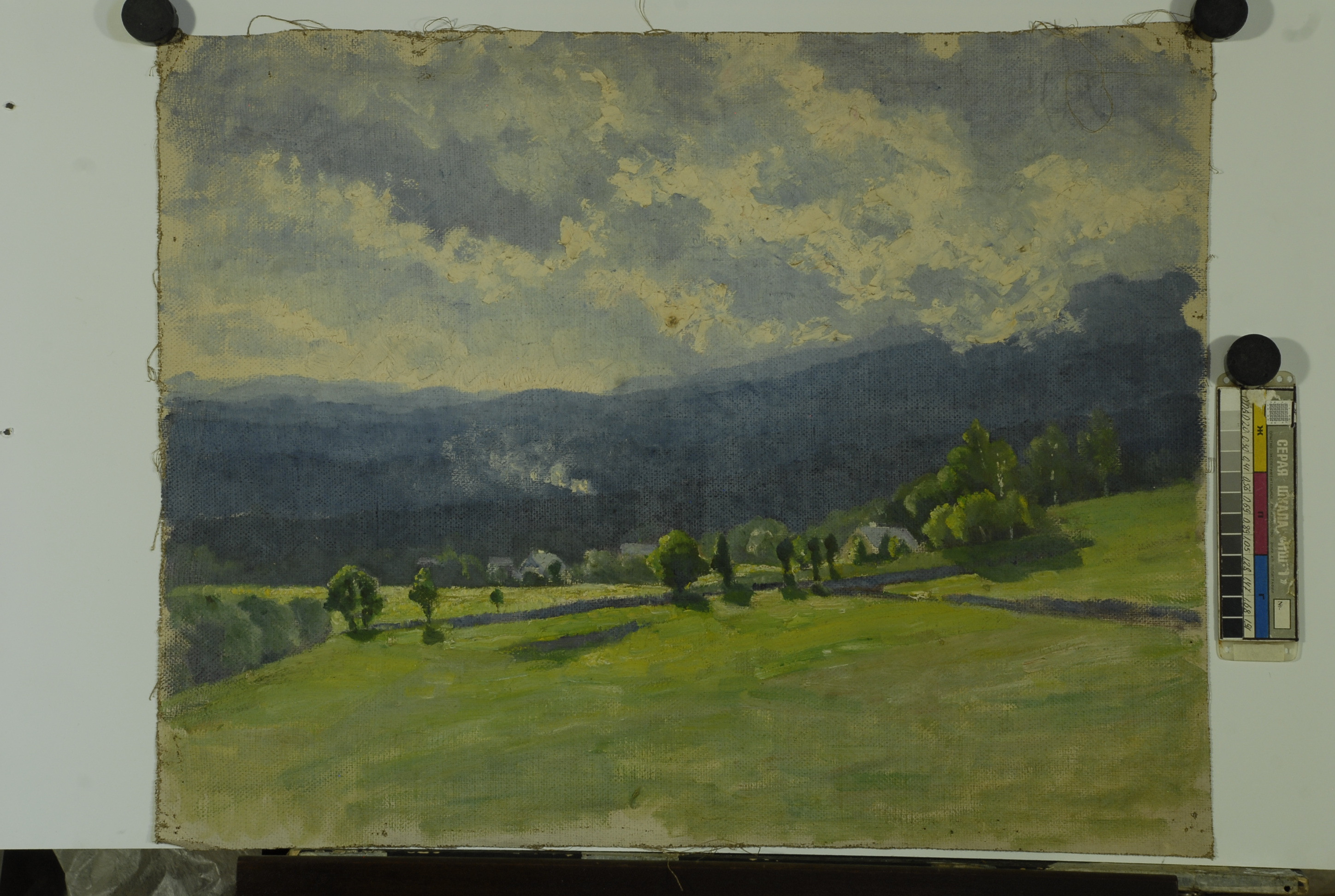 Інвентар 1967р.: загальне забруднення, краї полотна подерті, по краях точкові проколи.,
