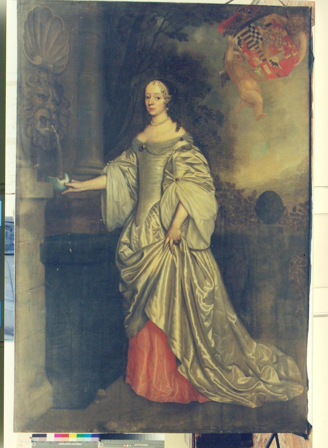 Інвентар 1989р.: полотно дубльоване, повсюдні потертості. Дрібні втрати фарбового шару, розклад лаку, внизу - затьок. Зліва - три розриви полотна.,