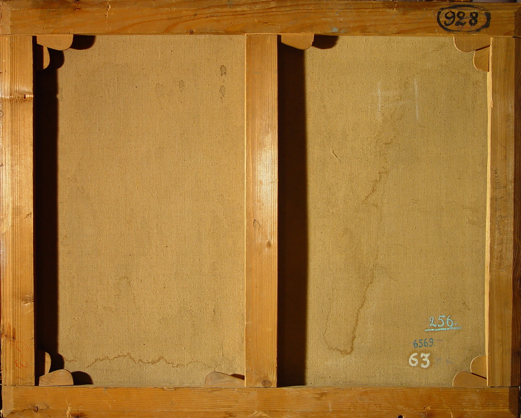 Поведеність полотна по кутах. Підрамок авторський, придатний.Зв"язок грунту з основою задовільний. Зв"язок фарбового шару з грунтом задовільний. Втрати фарбового шару: помитості бл.3%. Реставраційні тонування змінили колір на 3%. Покривний шар пізній, лаковий. Пилові забруднення з обох боків. Потребує профілактичного огляду.,