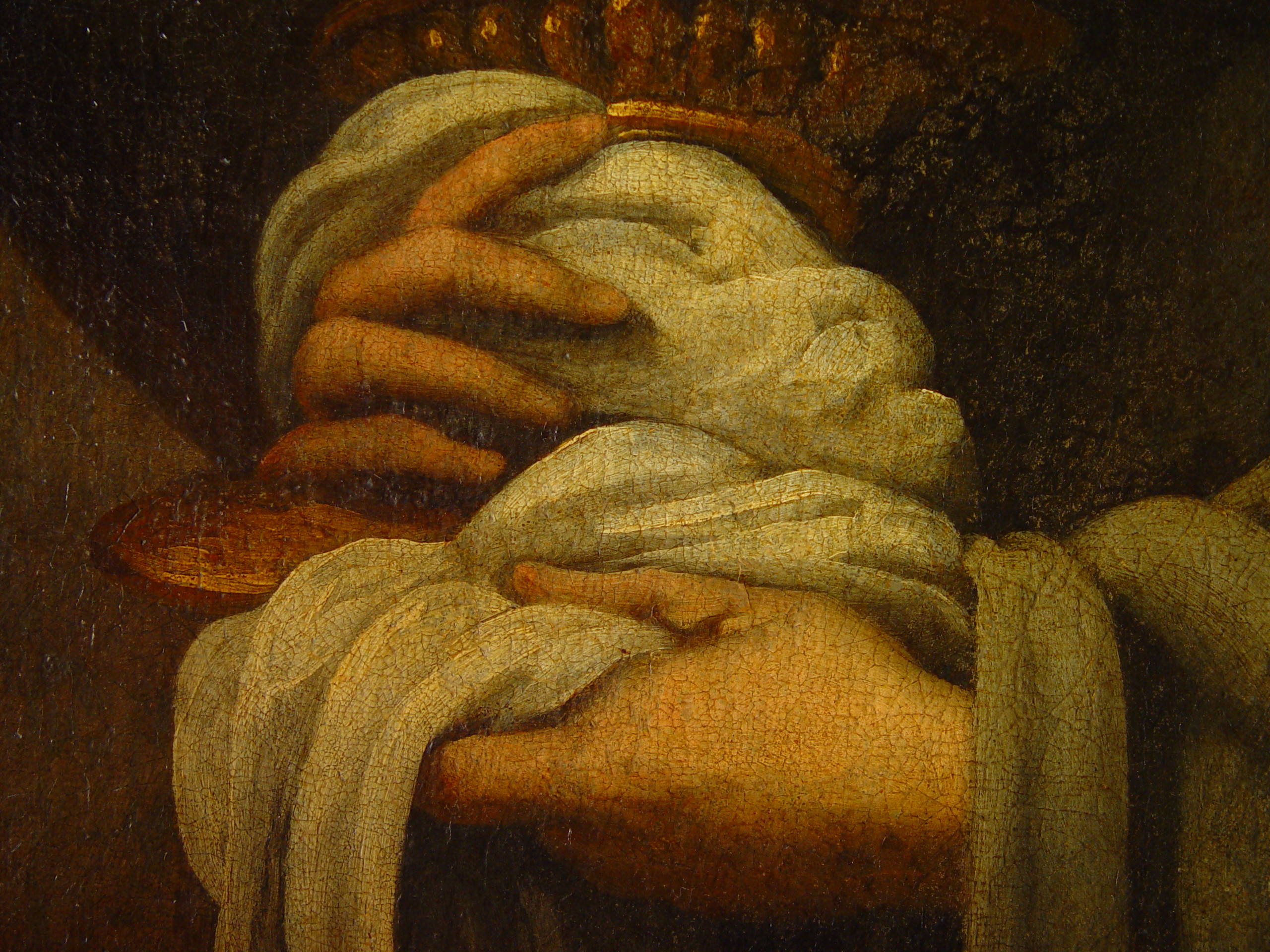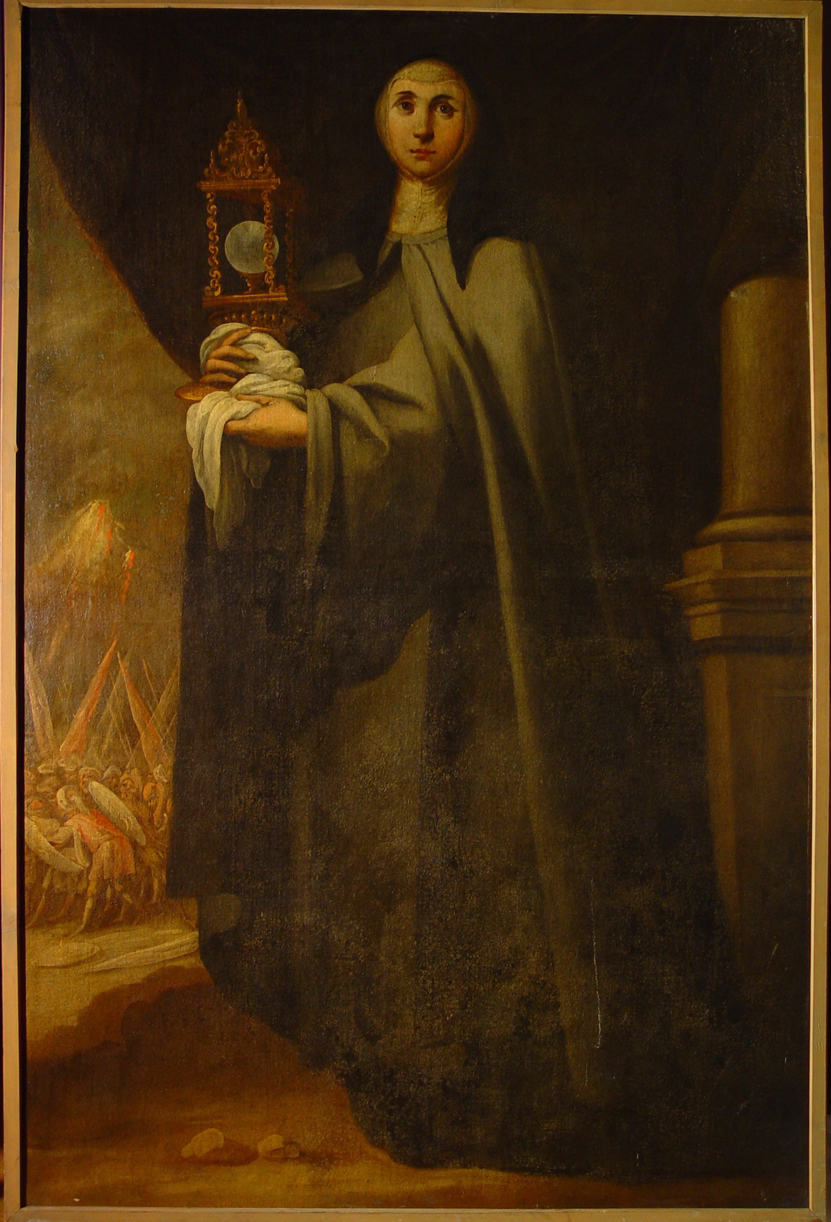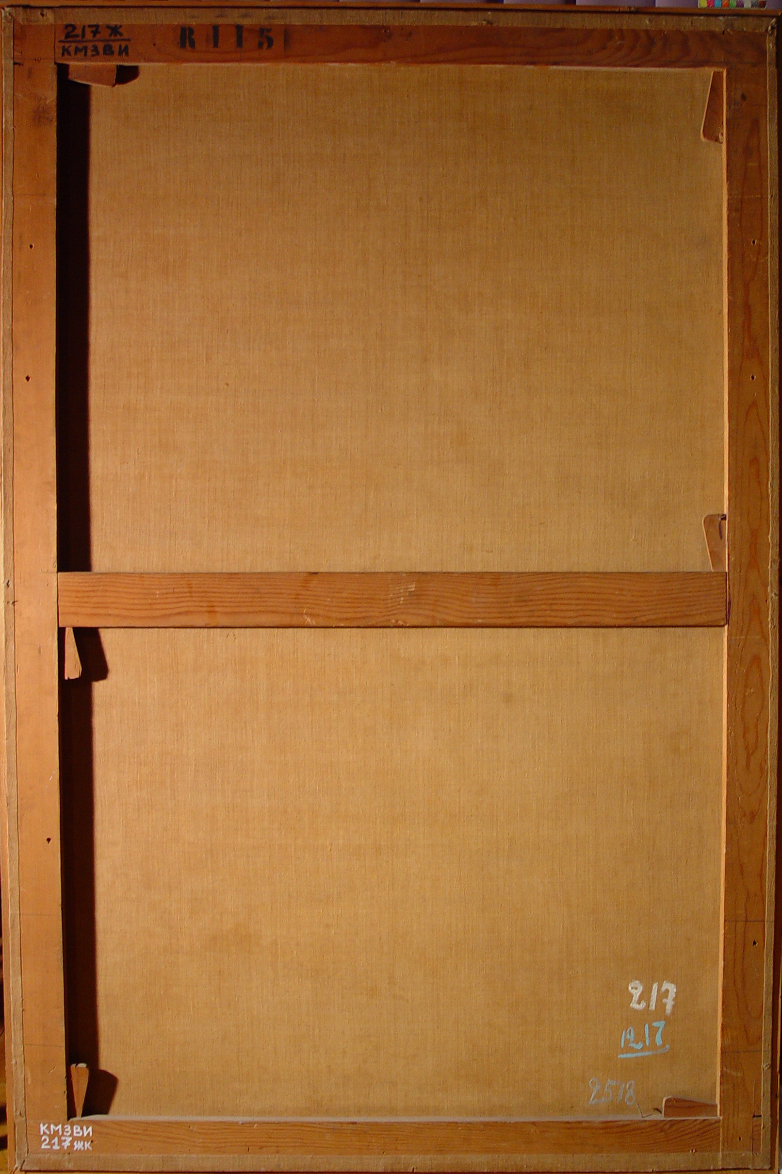Задовільний. Праворуч внизу подряпина. Підрамок неавторський,придатний. Обклеєна по периметру папером. Дубляж повний. Зв"язок грунту з основою задовільний. Зв"язок фарбового шару з грунтом задовільний. Втрати:осипання бл. 3% (переважно по краях). Покривний шар пізній, лаковий, тонований, відкладення лаку на 80% площі. Пилові забруднення з обох боків. Потребує підготовки до експонування.,