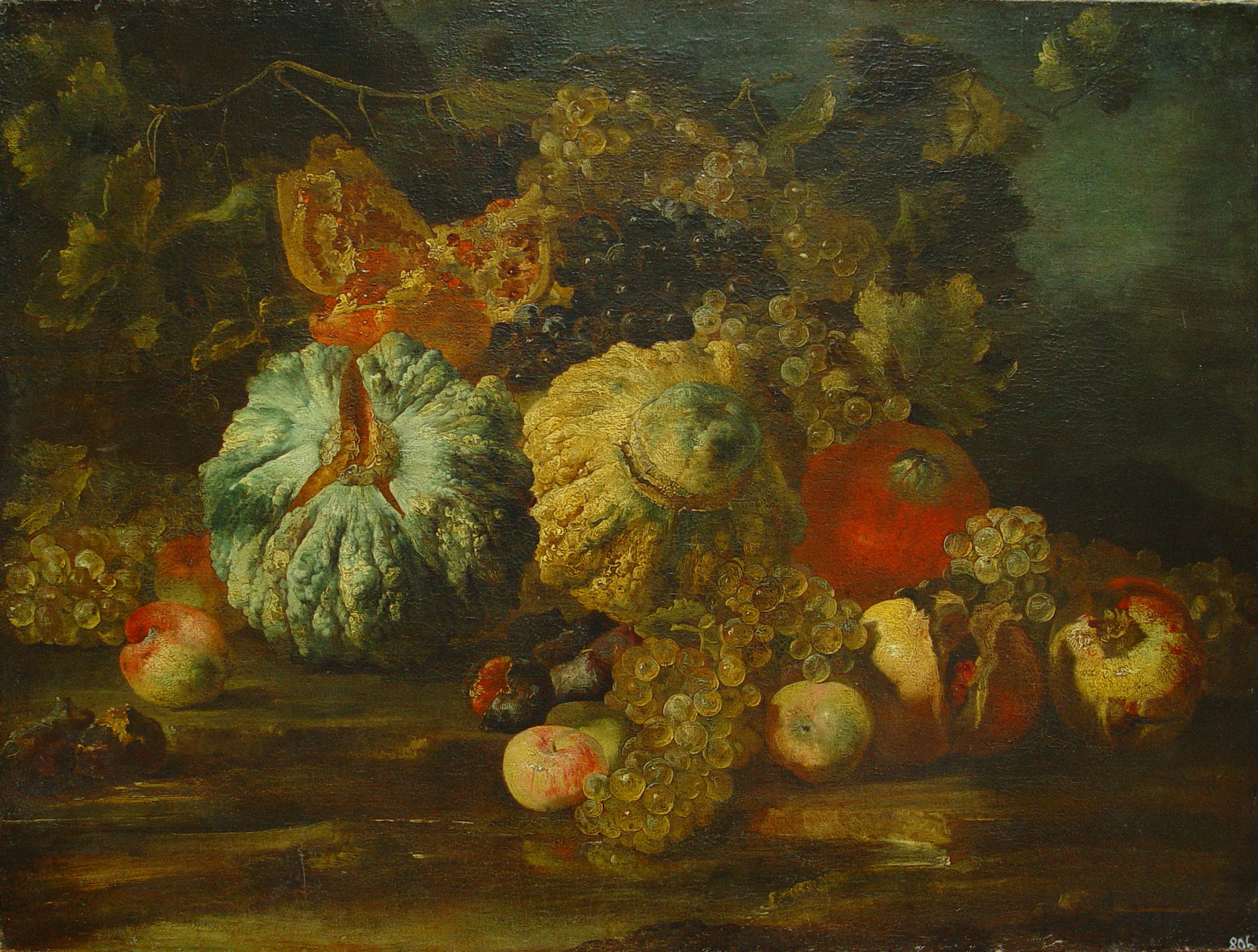 Закладка “Атрибуція” - Змiн. назва: Гарбузи, гранати та інші плоди на тлі пейзажуАвтор, автор съемки: Паче (ді Кампідольо) Мікеланджело