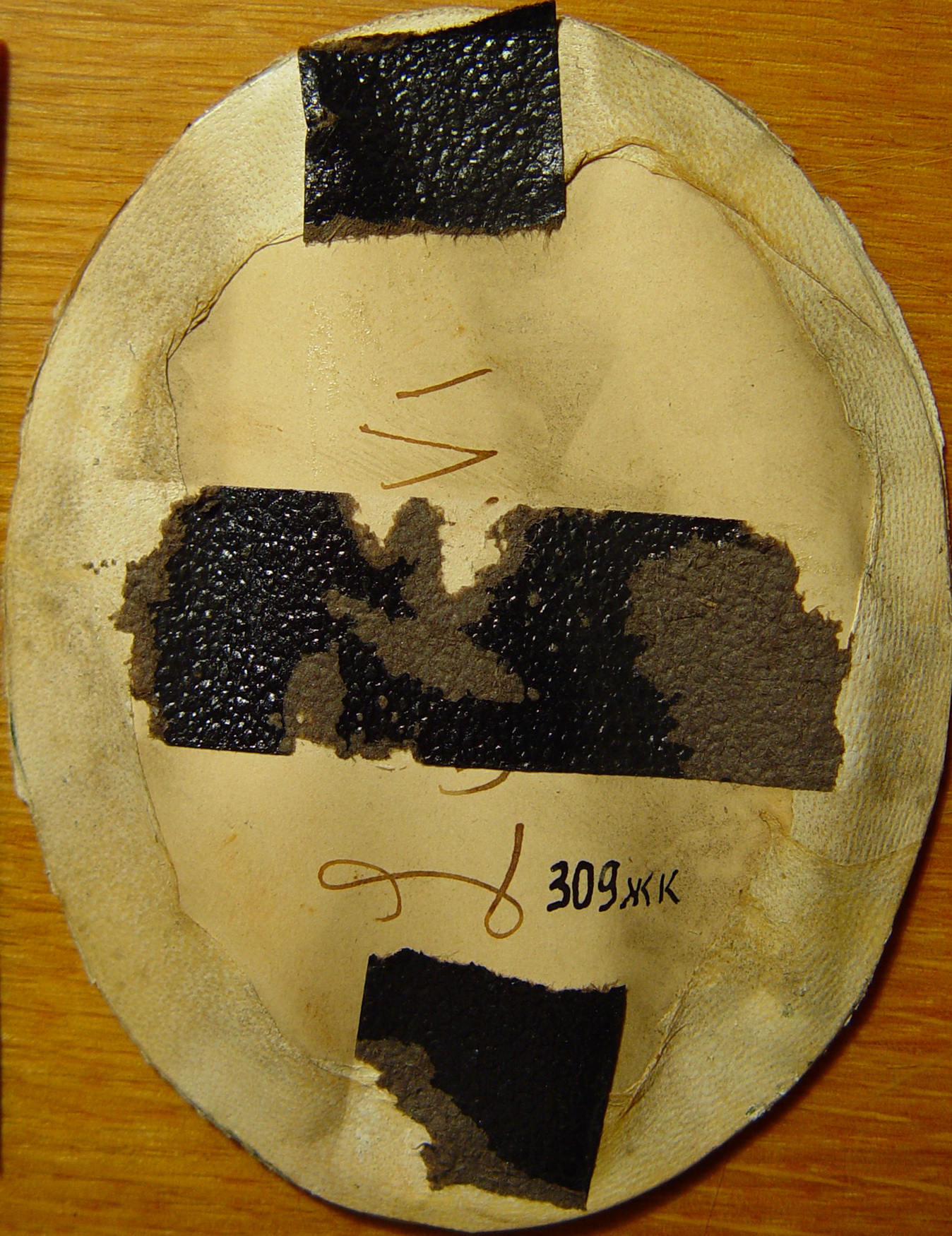 Легка подряпина на фоні праворуч.Дубляж повний, на картон. Кістка. Зв"язок фарбового шару з грунтом задовільний. Підписи біля п. кр., автентичні.Потребує профілактичного огляду.,