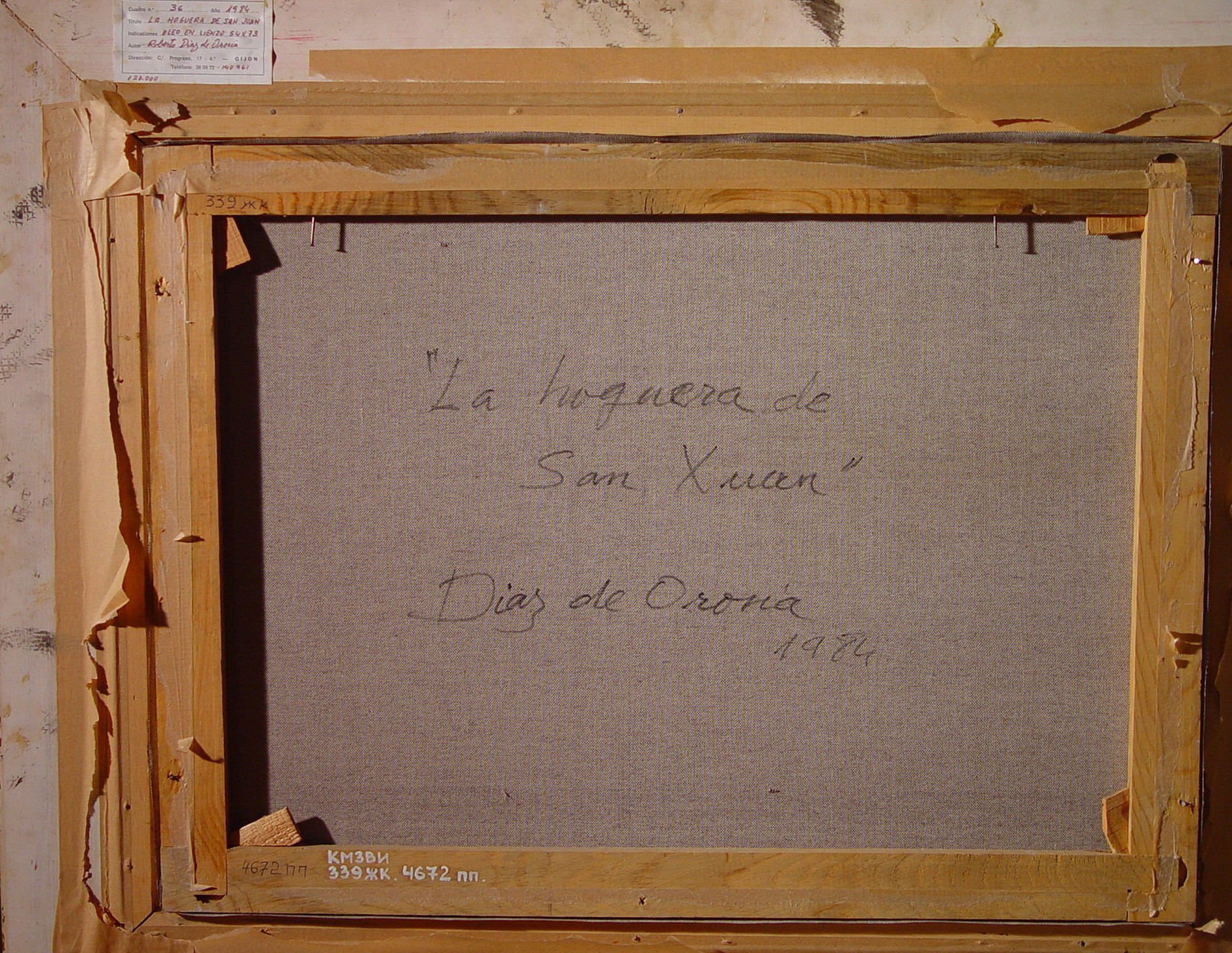 Задовільний.Зв"язок грунту з основою задовільний. Зв"язок фарбового шару з грунтом задовільний. Підписи Diar de Orosiа, локальні (н. л. к.). Пилові забруднення з обох боків. Потребує профілактичного огляду.,