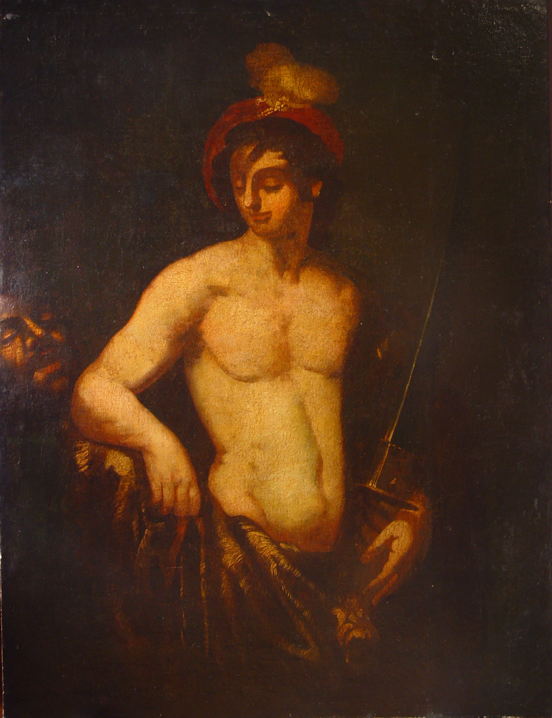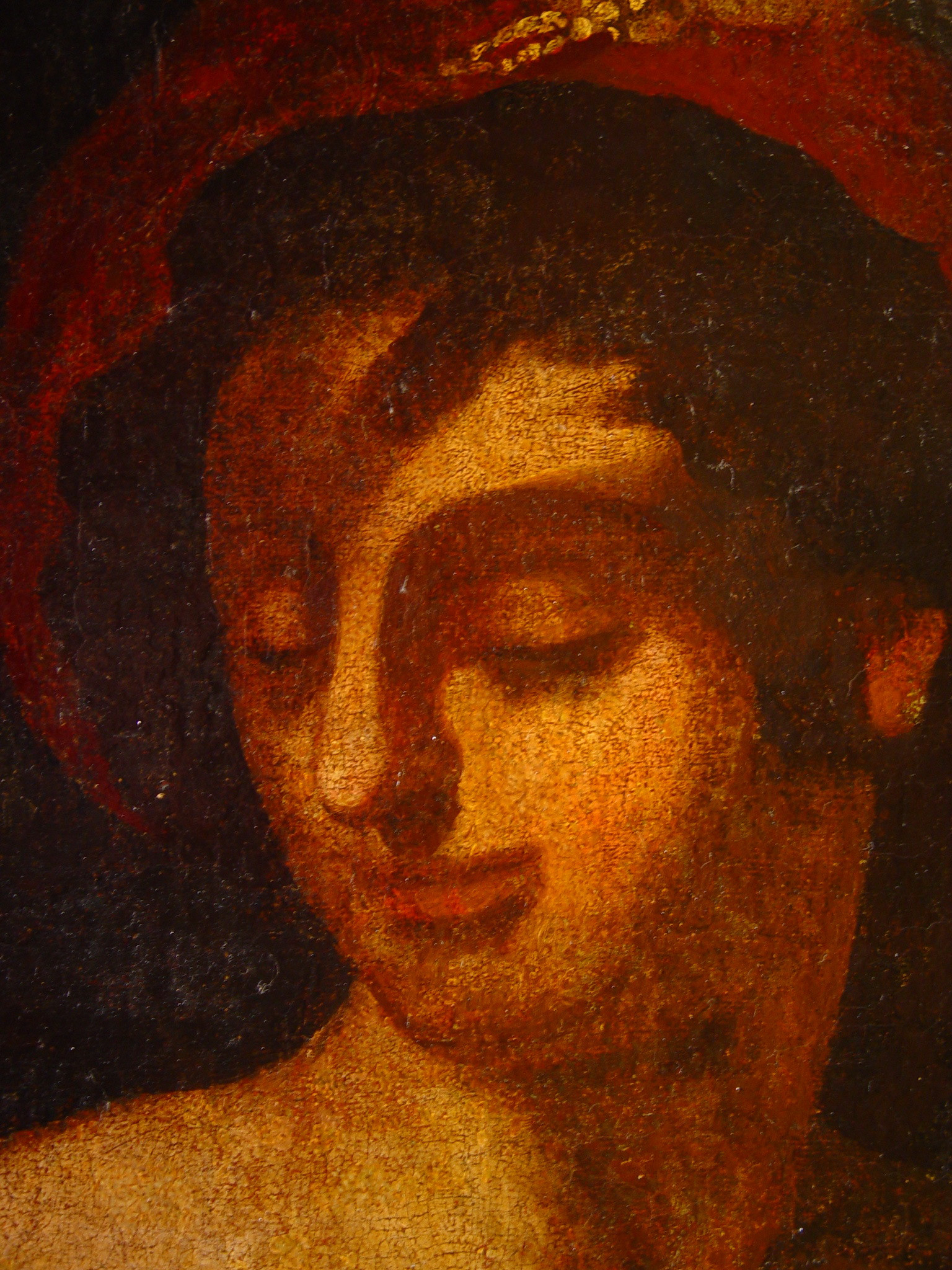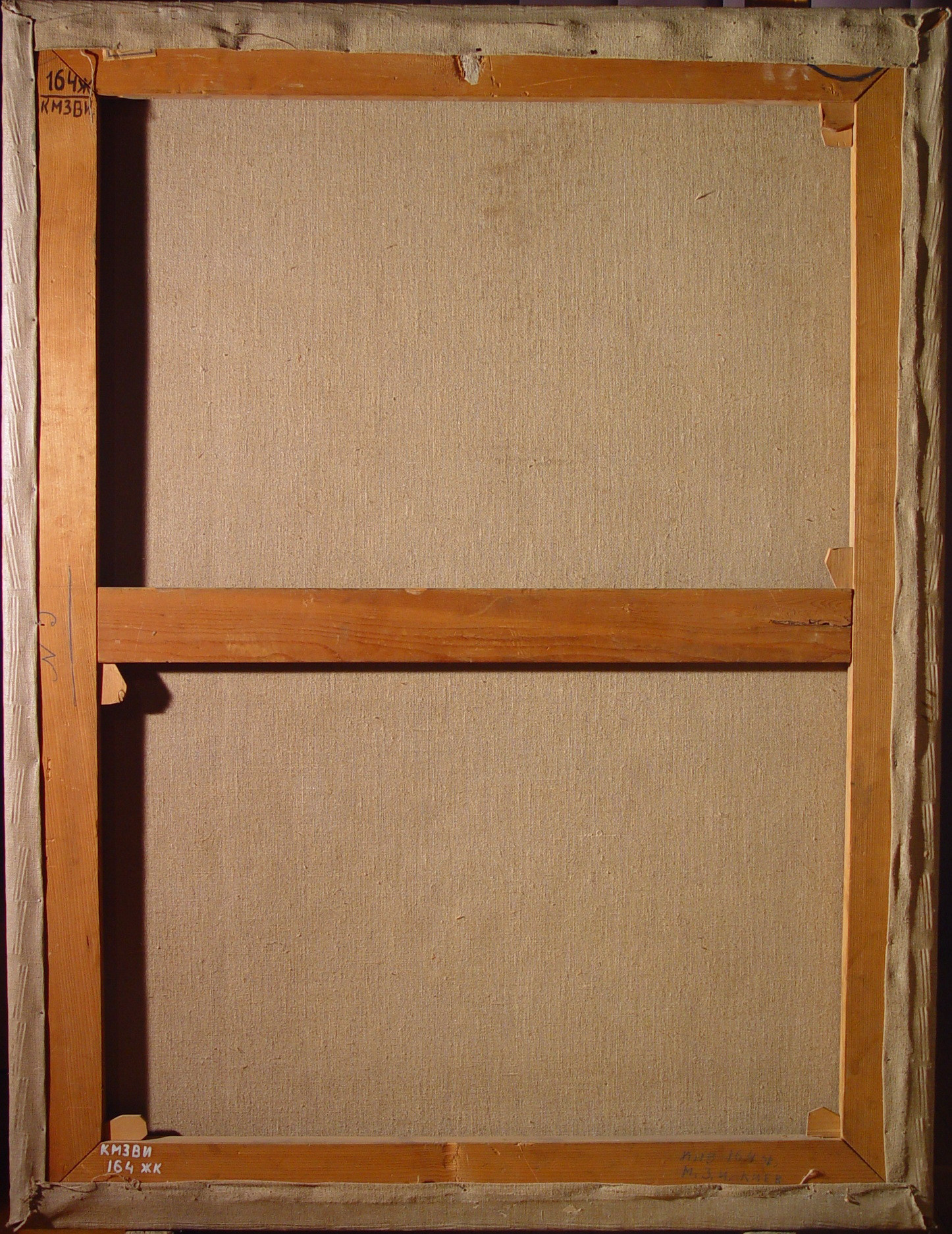 Відставання дубльовочного полотна. Численні бугрування полотна з відшаруванням фарбового шару. Сліди опіків від праски. Розходження полотна на місці шва по вертикалі. Численні записи та сильне забруднення та потемніння лаку. Підрамок неавторський,придатний. Окрайки полотна обрізані. Обрізана, по периметру. Дубляж повний. Зв"язок грунту з основою задовільний. Зв"язок фарбового шару з грунтом задовільний. Втрати: осипання бл.20%. Реставраційні тонування із засягненням на авторський живопис змінили тон на 50%. Покривний шар пізній, лаковий. Пилові забруднення з обох боків. Потребує підготовки до експонування.,