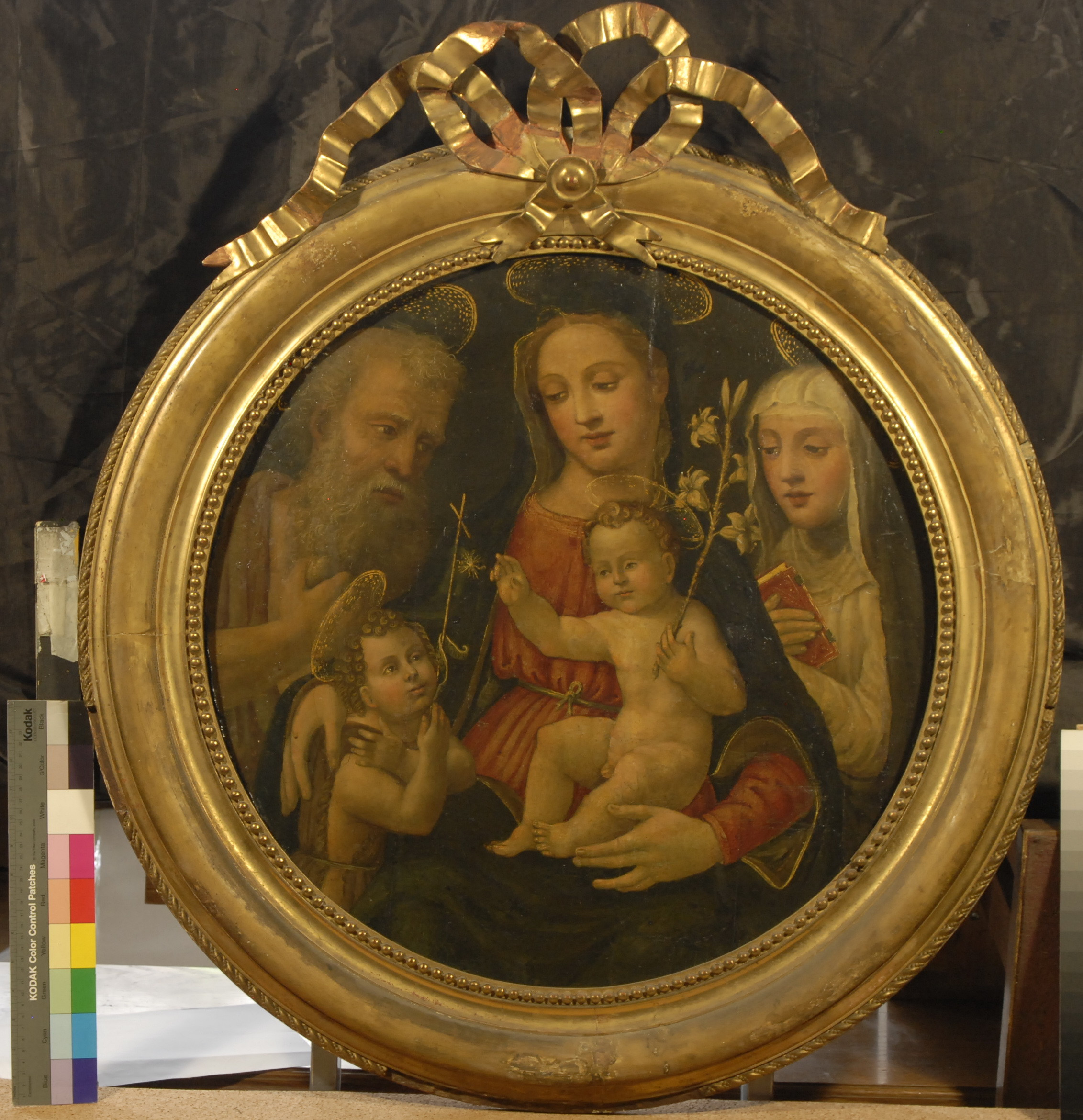 Закладка “Атрибуція” - Змiн. назва: Свята родина зі Святими Кларою Ассізькою та Ієронімом/Змiн. час створення: кінець 15 століття – початок 16 століттямісце створення, школа: Італія