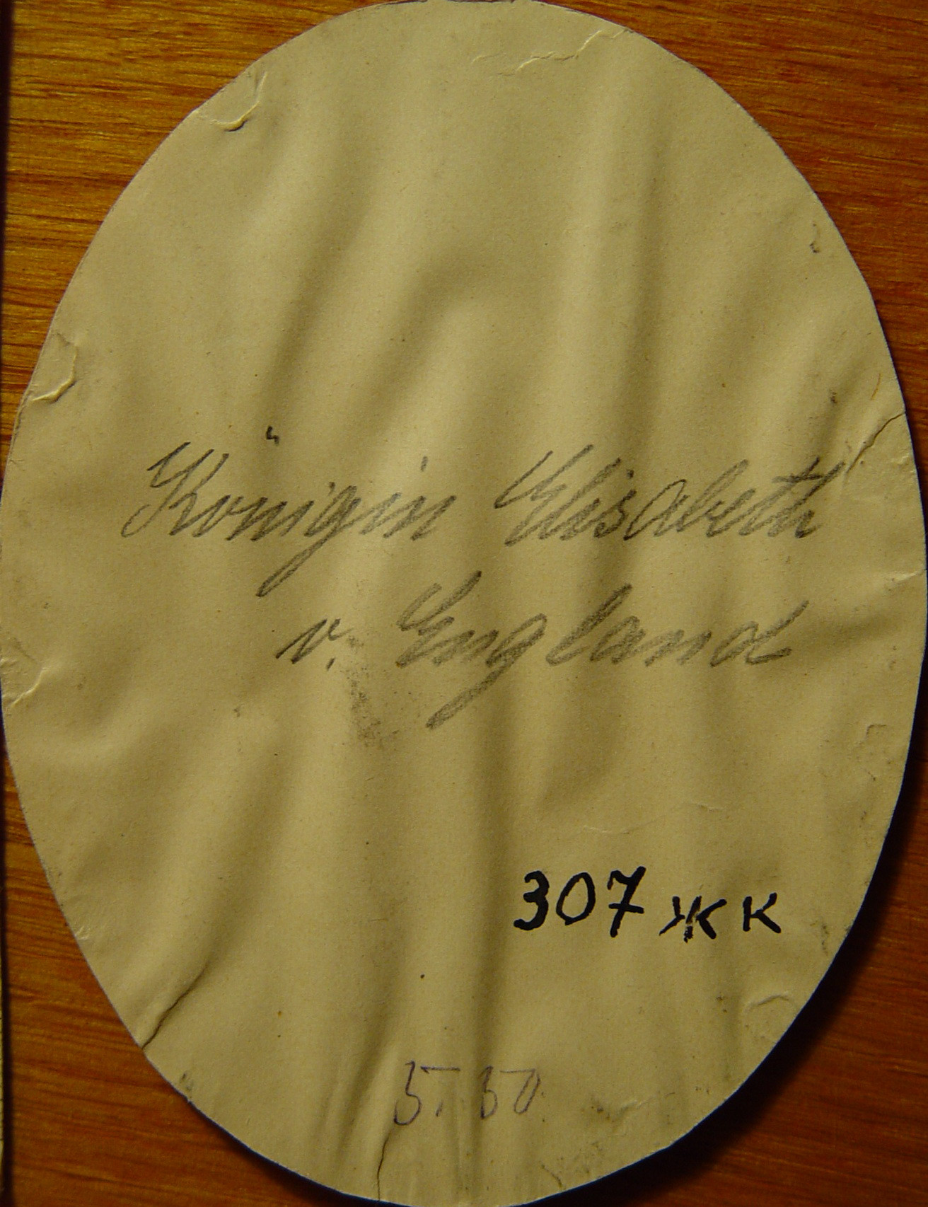 Легкі потертості по краю праворуч, внизу. Зворот заклеєний білим папером, що покоробився. Вмонтована під скло у металеву раму.У рамі, під склом. Кістка. Зв"язок фарбового шару з грунтом задовільний. Потертості, помитості бл. 1%, локальні, по краях. Підписи. Потребує профілактичного огляду.,
