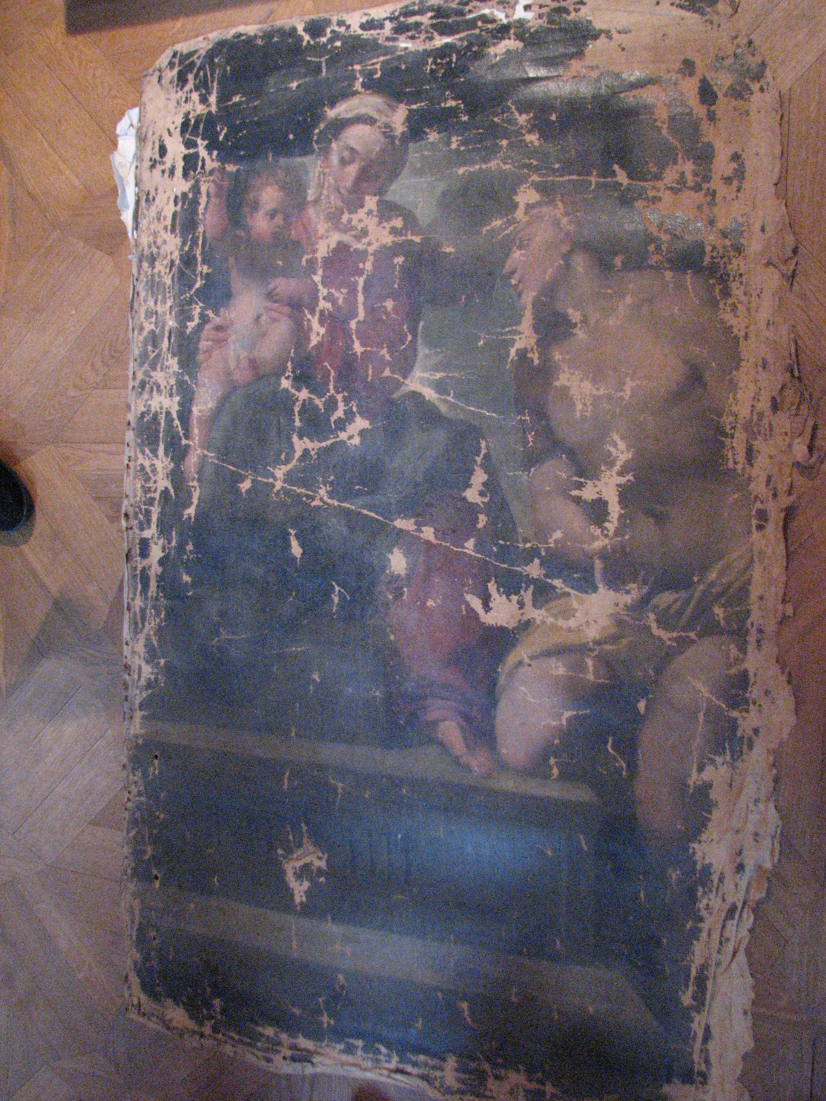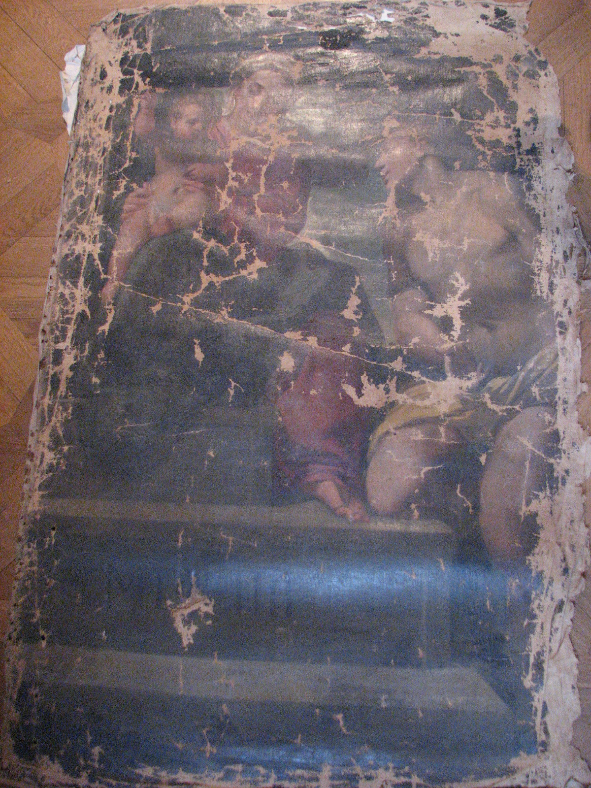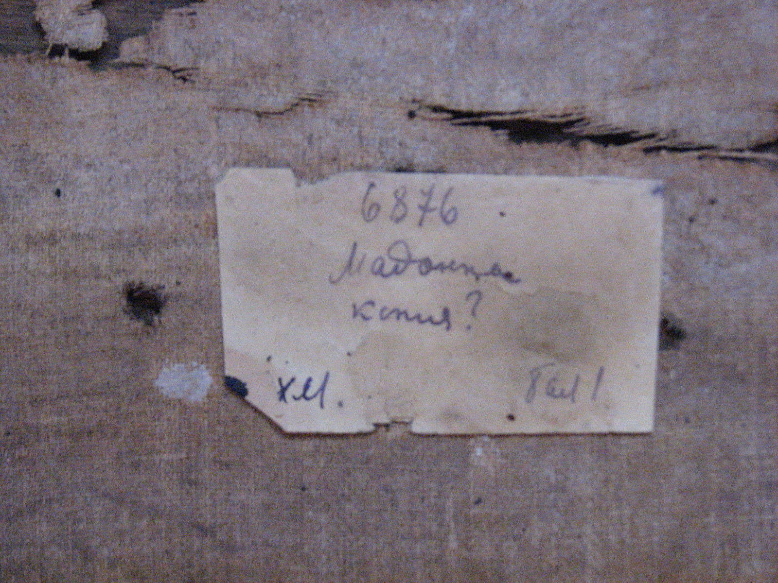 Інвентар 1948р.: без підрамника, осипання фарби по краях, надірвана, потемнення і забруднення лаку.,
